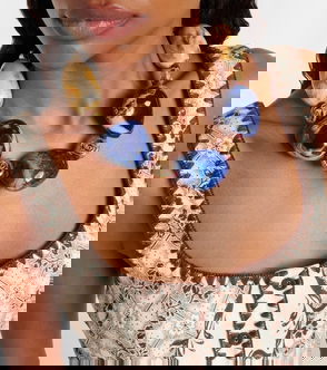 Conch shells, starfish, flowers and other organic forms are the inspiration for Eliou's contemporary jewellery. Combining vibrant colours with pearls, silver and gold in sweetie-inspired necklaces, bracelets and drop earrings, pieces have a playful charm and a relaxed aesthetic, making them perfect holiday accessories.