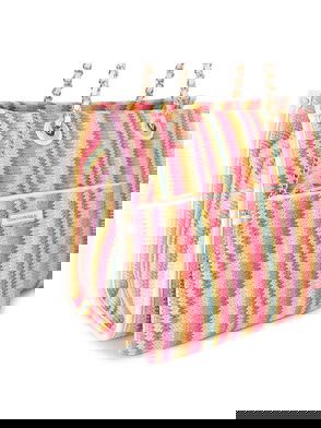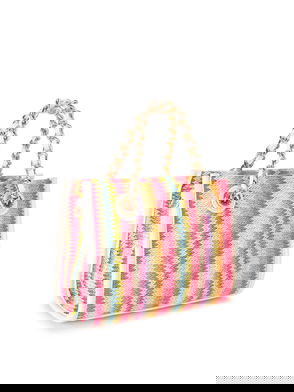 Celebrated for creating glamorous designs with unexpected materials, Rabanne’s innovative spirit continues to break boundaries. Made from lamé raffia, this tote bag is embellished throughout and has adjustable metallic leather handles.
