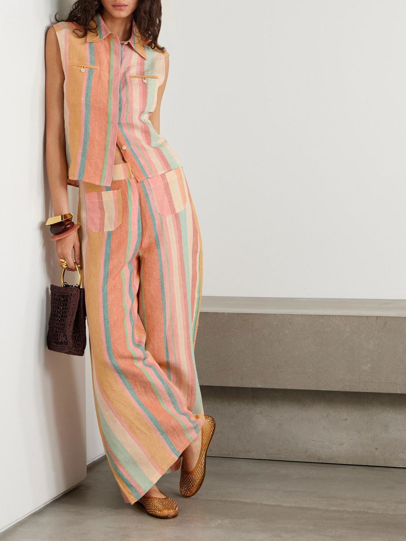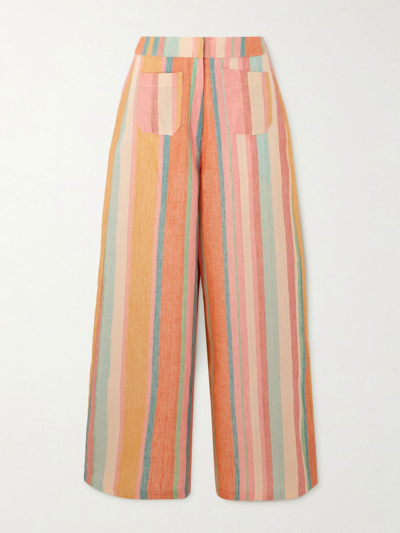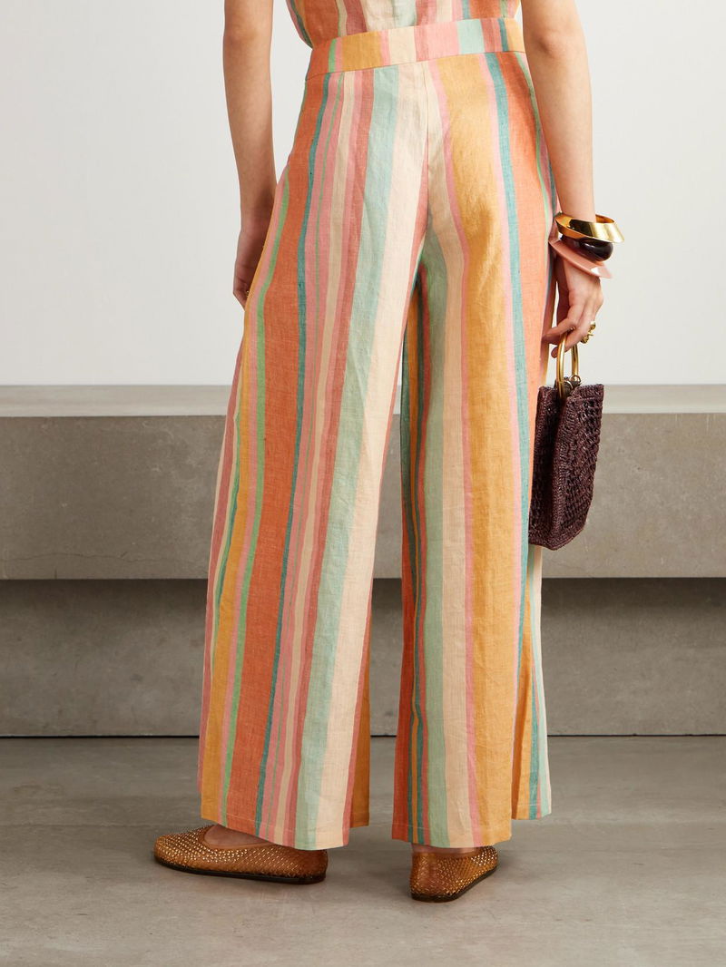 Emporio Sirenuse’s ‘Adele’ pants are made from hand-loomed linen and patterned with stripes in vibrant rainbow shades. This retro style has relaxed, wide legs and is partially lined for coverage.