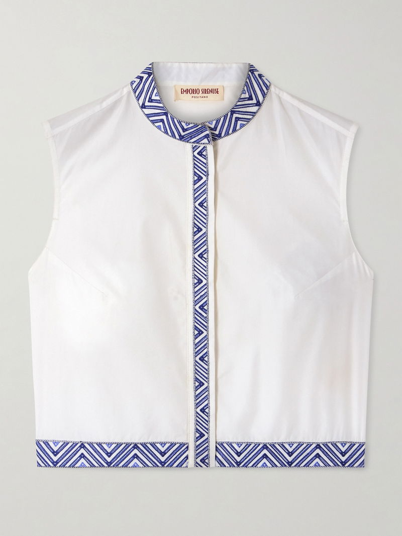 This 'Andorra Iris' top is cut from cotton-blend poplin and embroidered with a geometric pattern along the edges.