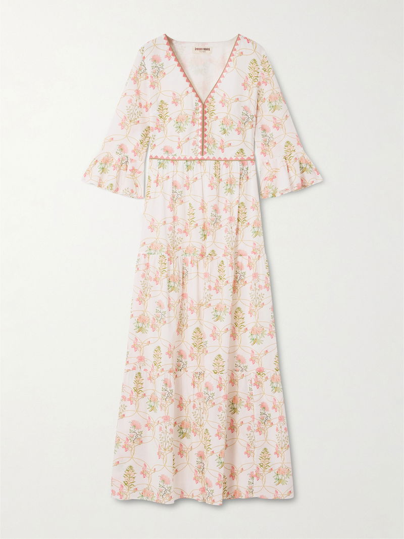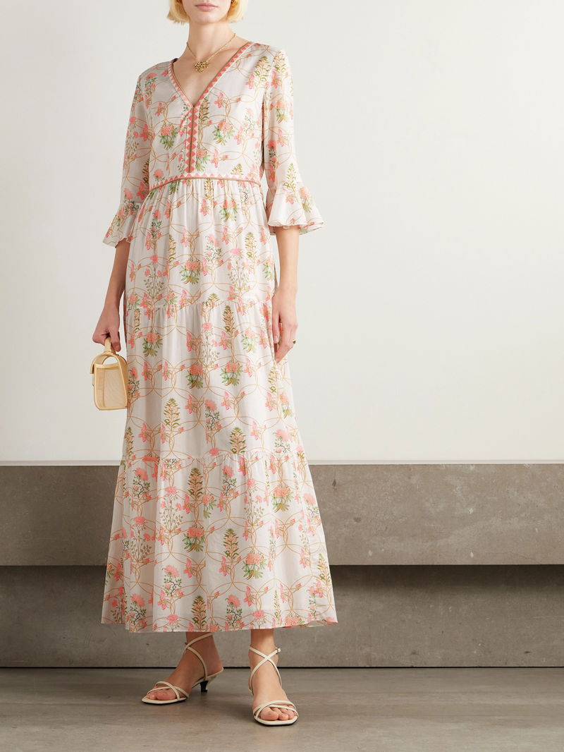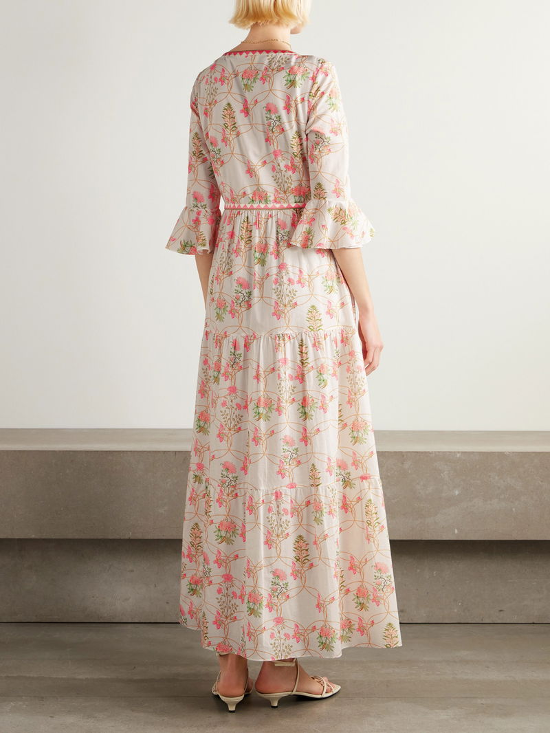 Emporio Sirenuse's collections evoke summers spent on Italy's Amalfi Coast. This 'Bella' midi dress is made from breathable cotton that's printed with vibrant roses and has floaty ruffled sleeves and tiered skirt. Wear yours with lace-up sandals.