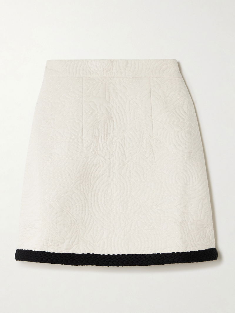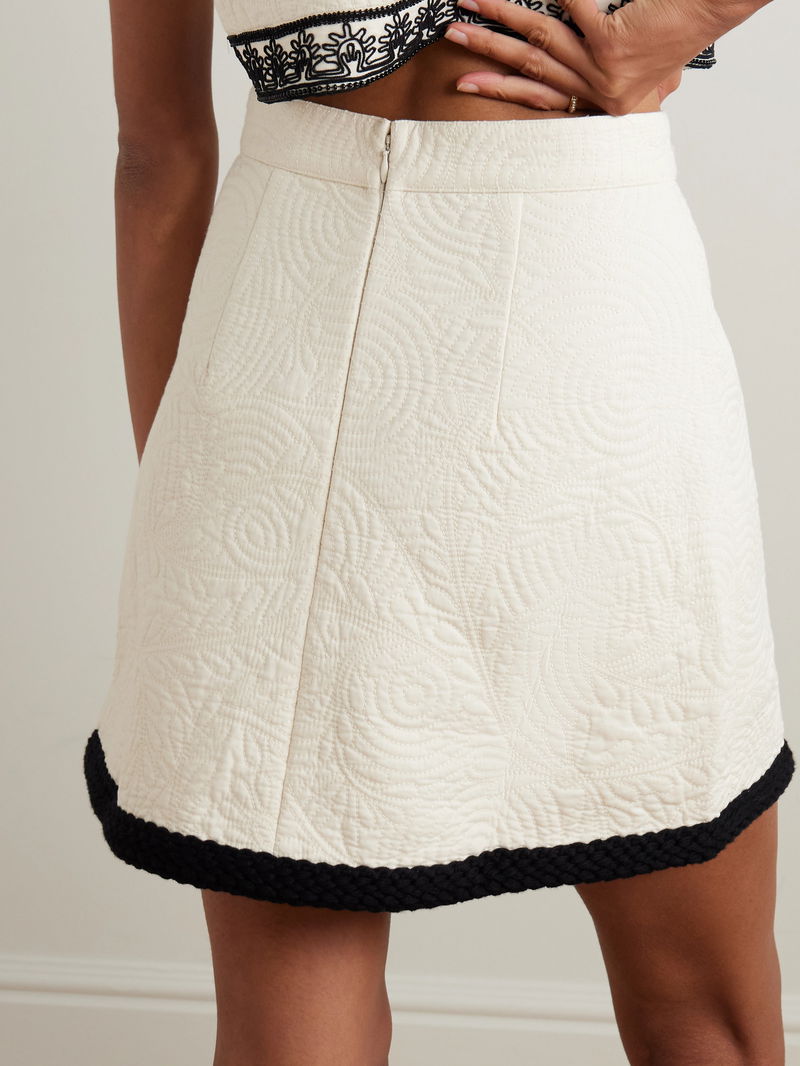 The elegance of the Italian Riviera inspires Emporio Sirenuse's collections. This 'Giuliana' mini skirt is made from cotton that's beautifully quilted with a floral pattern and has an A-line shape and braid-trimmed hem. Style yours with the matching jacket.
