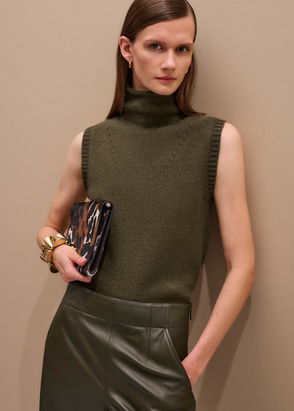 Vest, Cashmere, Ribbed trims, Slips on, Mid-weight knit.
