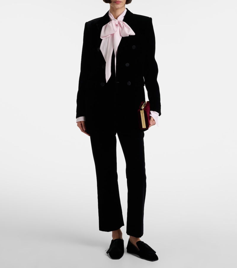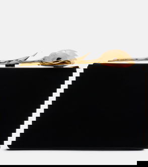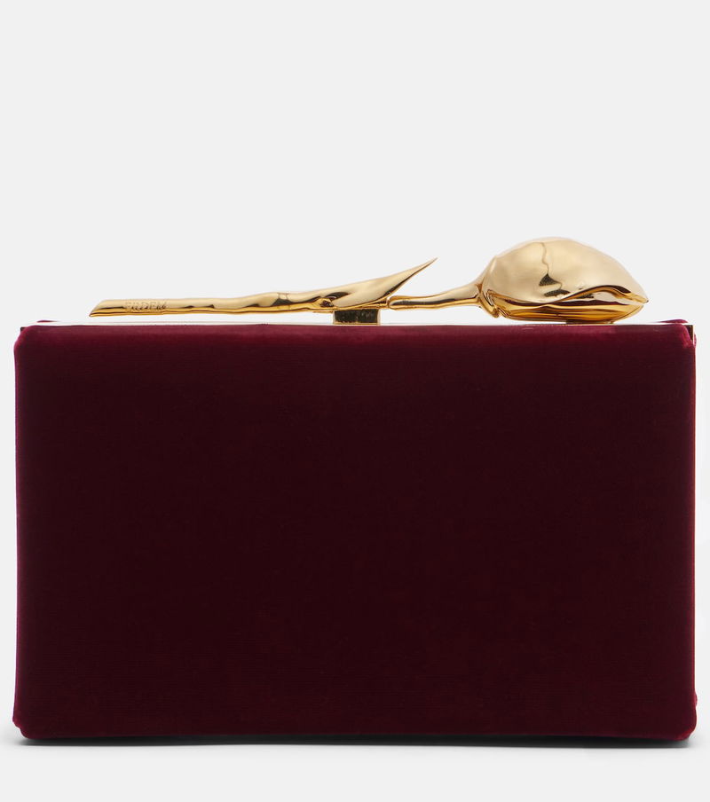 The Bloom Mini clutch from Erdem owes its name to the glamorous gold-toned hardware in a floral shape. Crafted from soft velvet, the accessory features a rigid silhouette with a suede lining and a detachable chain strap.
