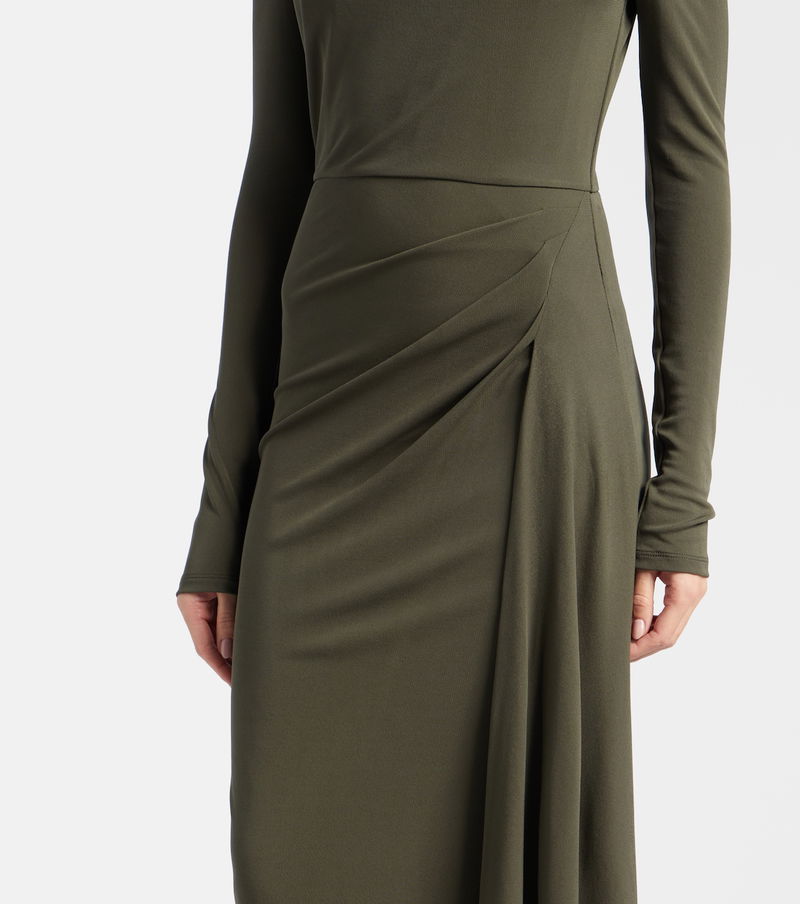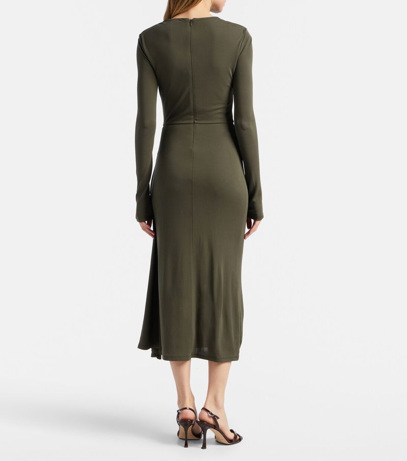 Incorporate modern romance into your edit with Erdem's whimsical and delicate designs. This midi dress is made from fluid jersey with long sleeves and gentle draping on the bodice and skirt.