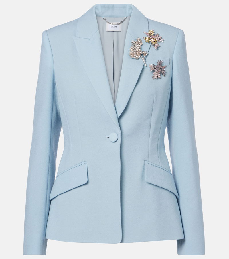 Incorporate modern romance into your edit with Erdem's whimsical and delicate designs. Carefully crafted from virgin wool crêpe, this blazer is a single-breasted piece with floral-shaped embellishments and flap pockets.