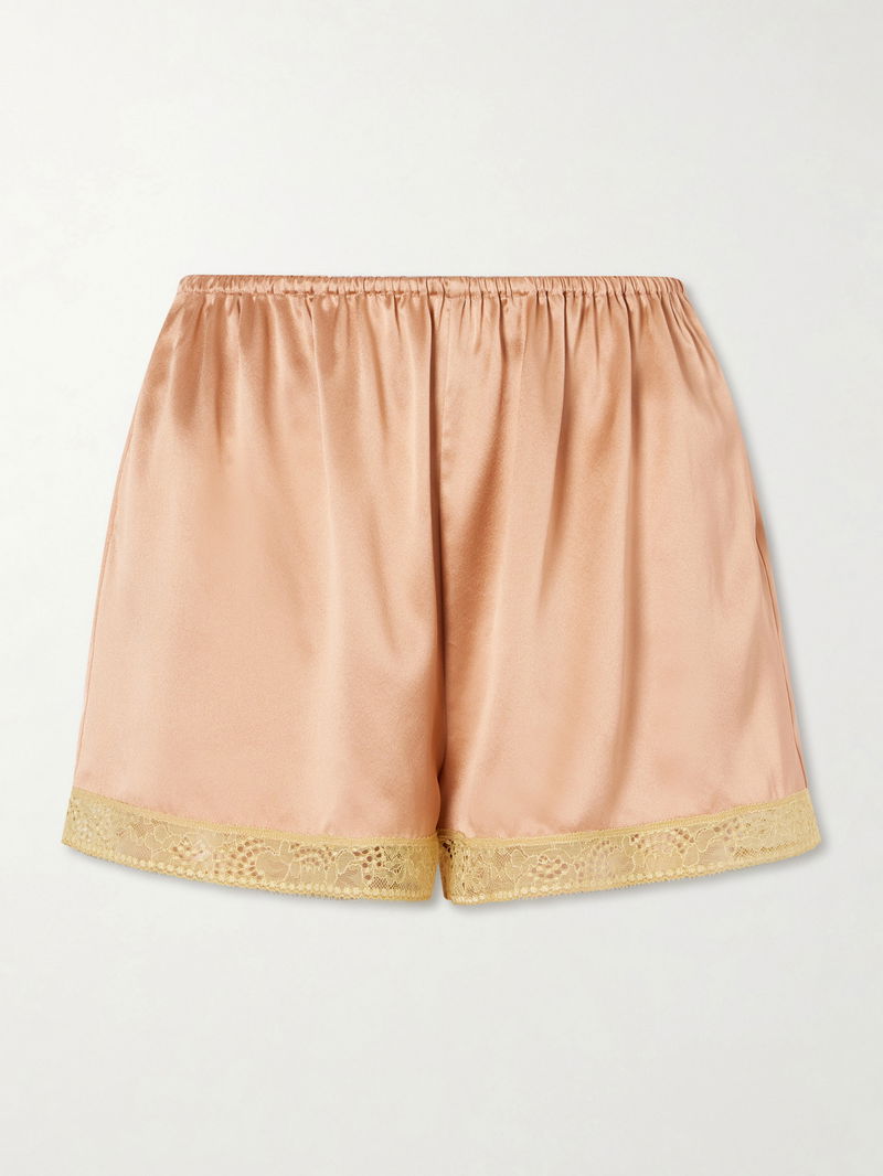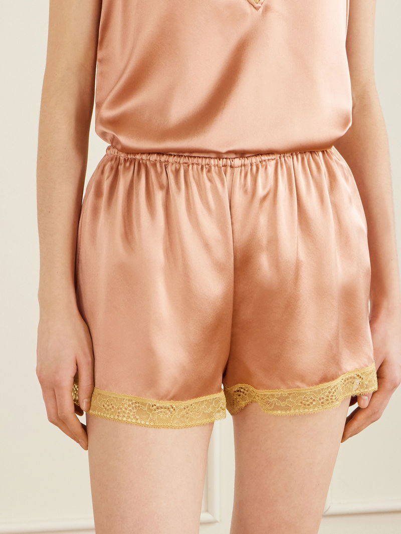 Eres' shorts are cut from fluid silk-satin that feels so soft against the skin. Designed for a relaxed fit, they have a comfortable elasticated waistband and are trimmed with lace for a romantic finish.