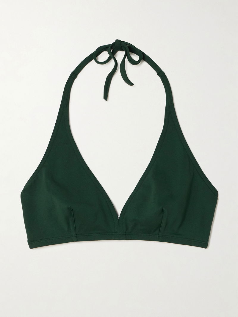 Eres' signature peau douce fabric is soft, comfortable and provides light support. This classic bikini top has triangle cups - suitable for small to medium busts - and will never date, making it a wise investment.