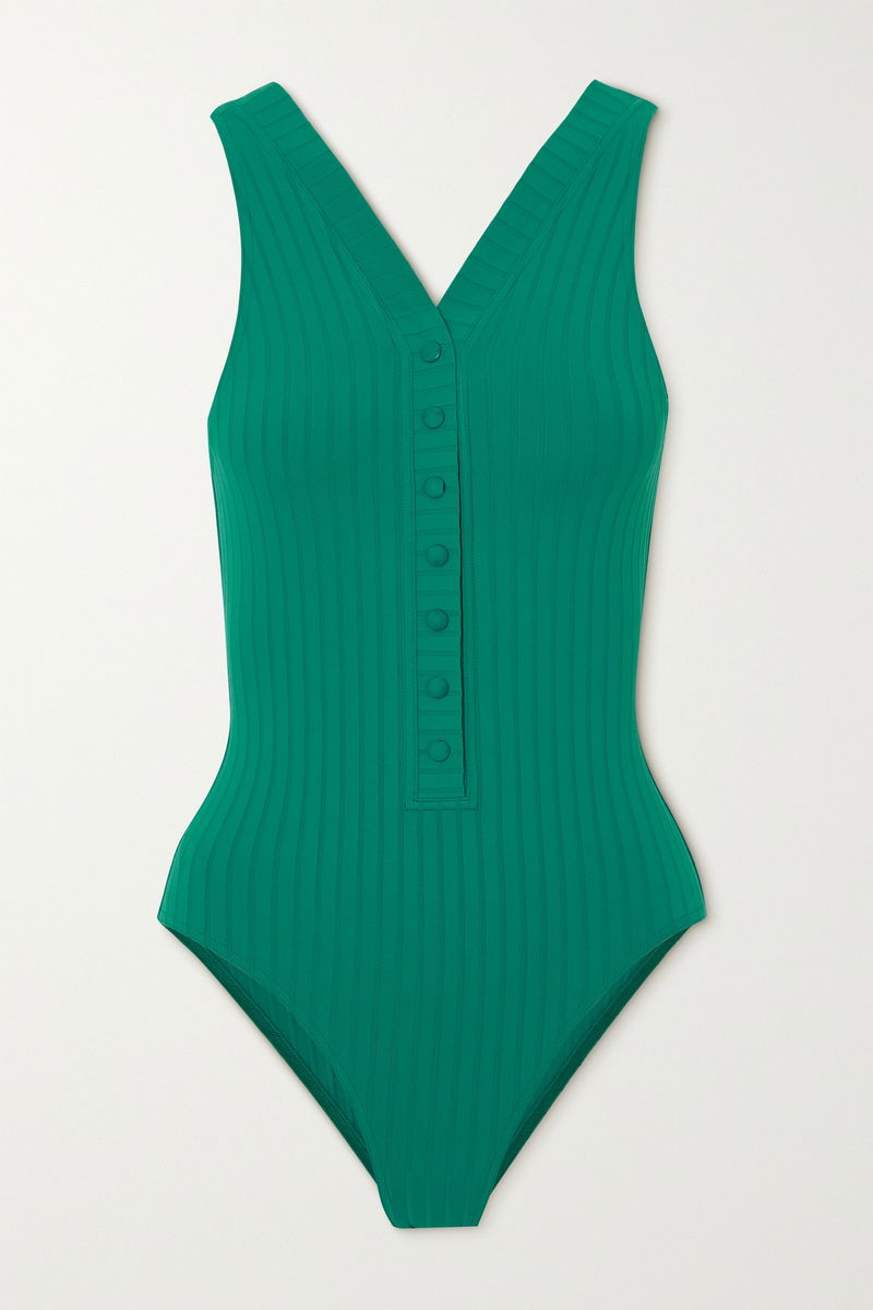 Eres' 'Caipirihna' swimsuit is made from ribbed stretch fabric that beautifully contours your body. It's designed in a streamlined silhouette with an adjustable neckline traced with snap fastenings. Tie a pareo over yours when going from poolside to lunch.