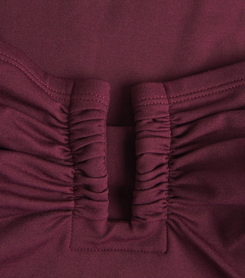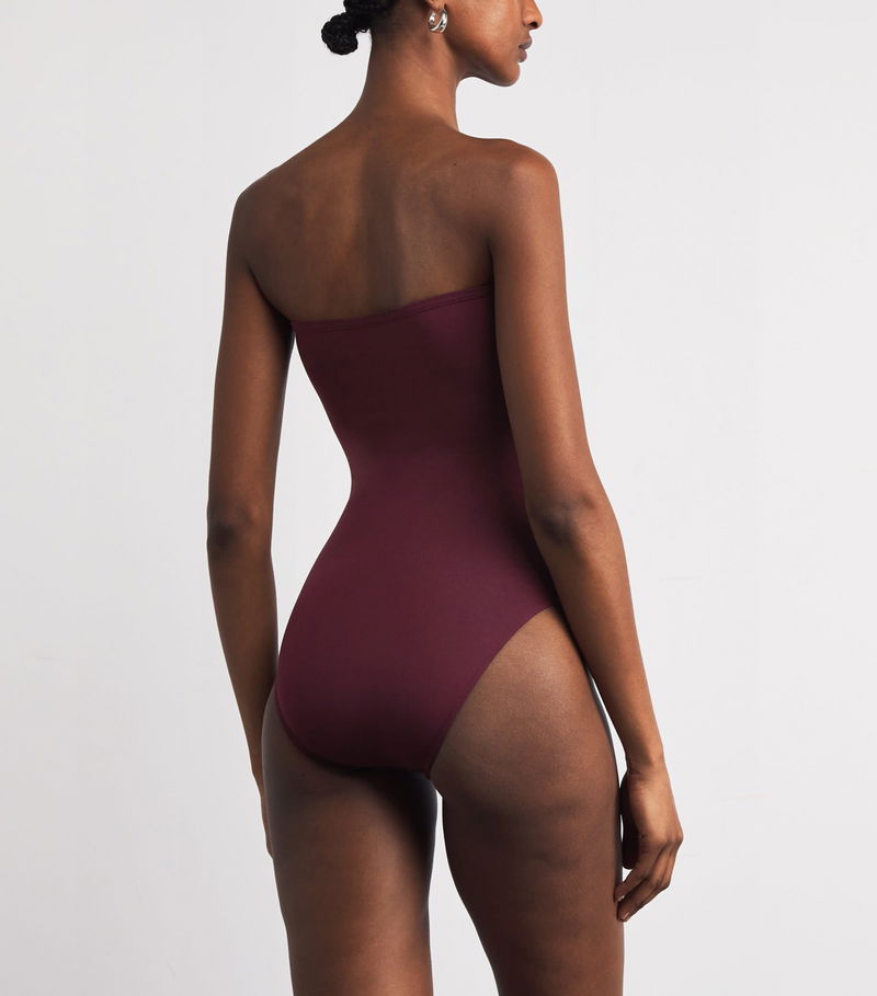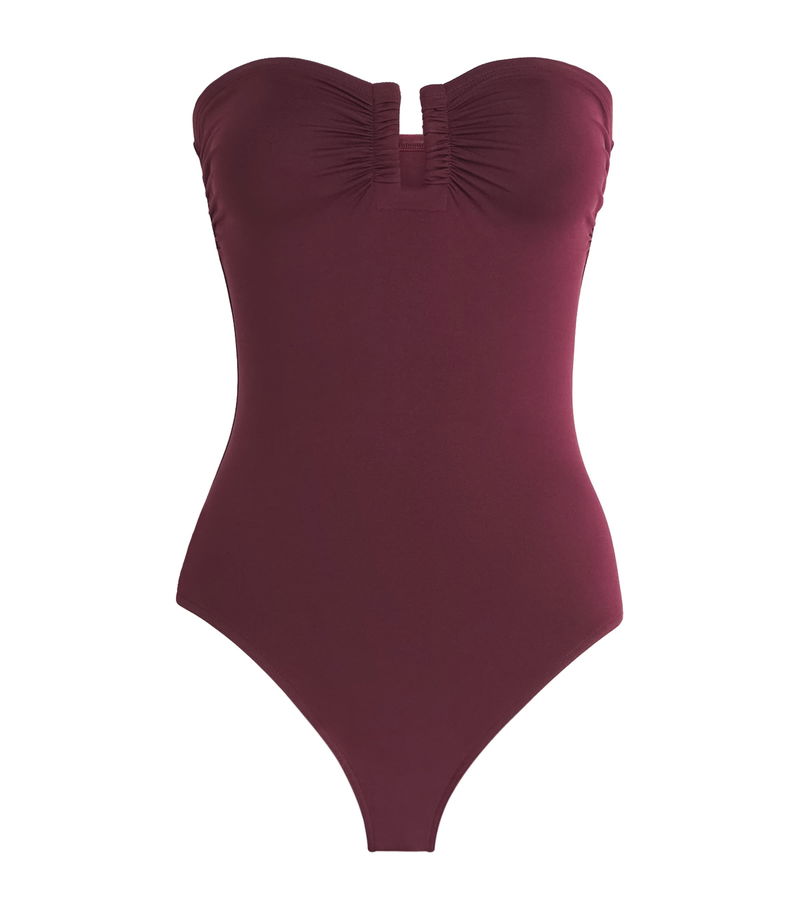 Offering a feminine cut, thanks to its U-shaped cut-out and pleated cups, this strapless design is perfect for poolside lounging with effortless comfort.