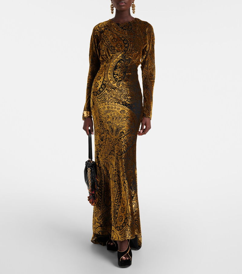 Etro has successfully kept the fashion world captivated with its free-spirited attitude. These velvet platform sandals are made to an asymmetrical design set atop block heels with ankle straps for stability.