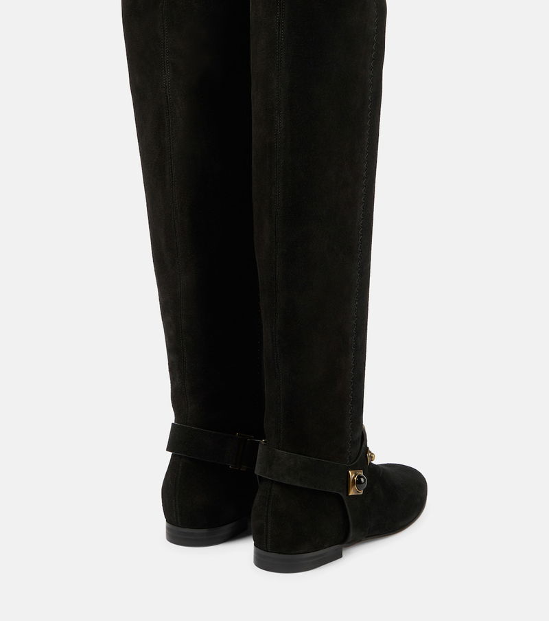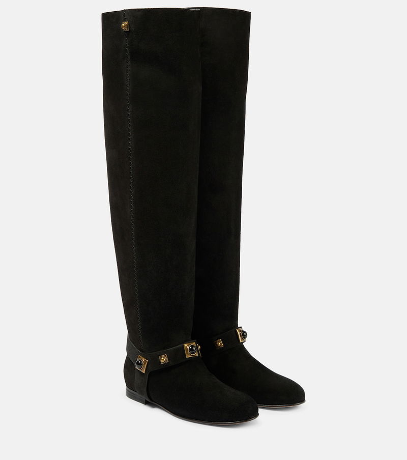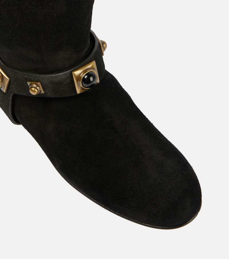 Etro demonstrates its expertise in eclectic design with the Crown Me knee-high boots. Made from suede, they have stitched sides and studded leather straps with cabochon stones.