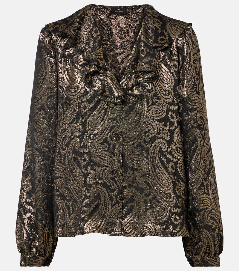 Paisley prints are so synonymous with Etro that they've become a house signature. This blouse showcases the iconic pattern and features a loose silhouette with a ruffled V-neckline.