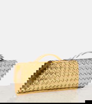 The Talk clutch from Etro is crafted in Italy from gold-toned metallic leather and features a detachable, adjustable shoulder strap for easy carrying. The Small design is complete with a secure snap-clasp fastening.