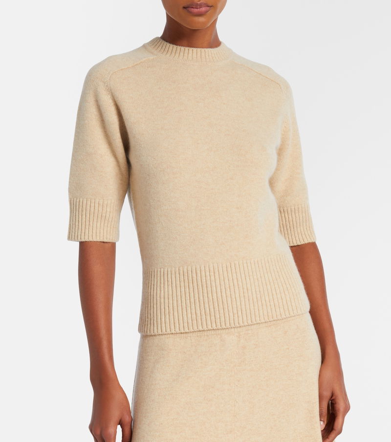 Extreme Cashmere sources its cashmere-blend yarn from Mongolian goats known for their ultra-soft, resilient coats. The N°374 Lauren top has a crewneck design and elbow-length sleeves.