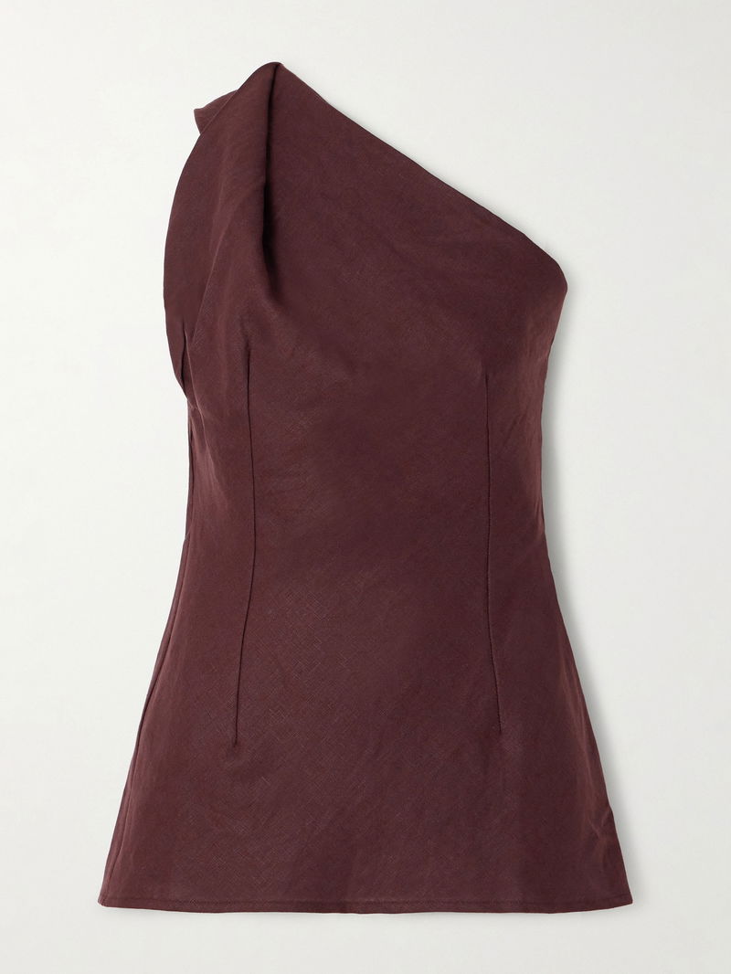 Faithfull's 'Agua' top is a contemporary classic. It's cut from breathable linen in a rich shade of earthy brown, has a fitted bodice that has defining darts before subtly flaring at the hem. The one-shoulder adds asymmetric appeal.