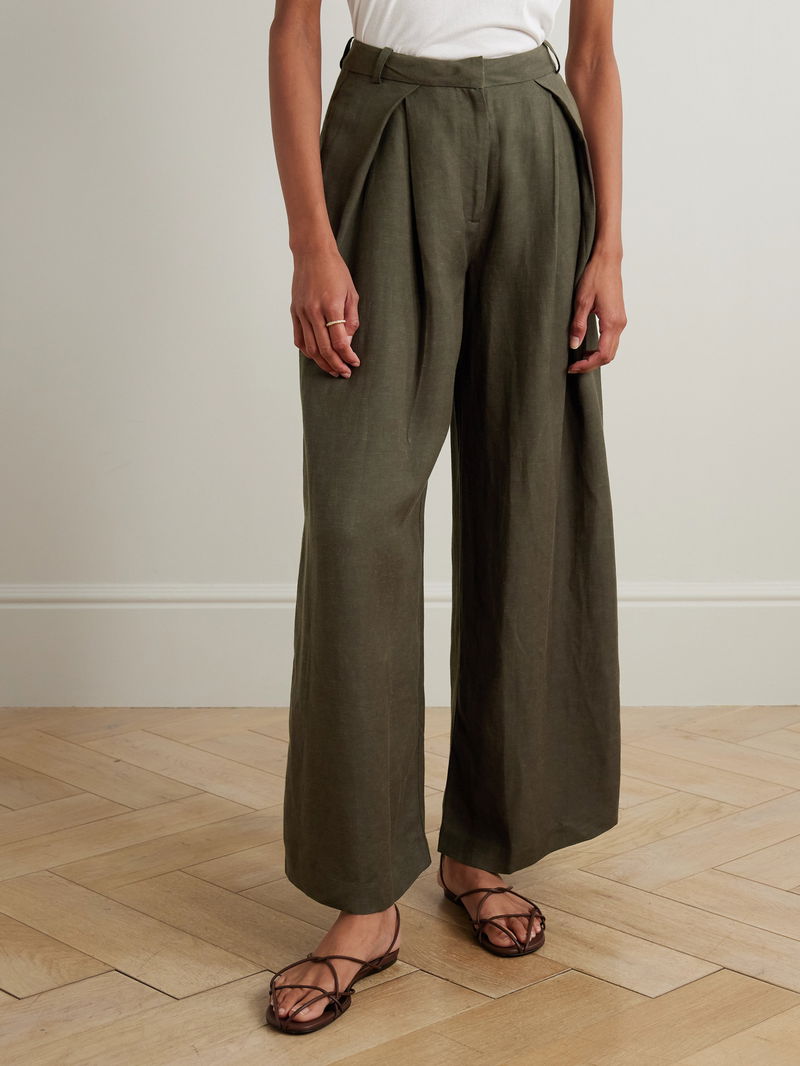 They're tailored with pleated, wide legs and have a hint of linen in their blend, so they're light and breathable.
