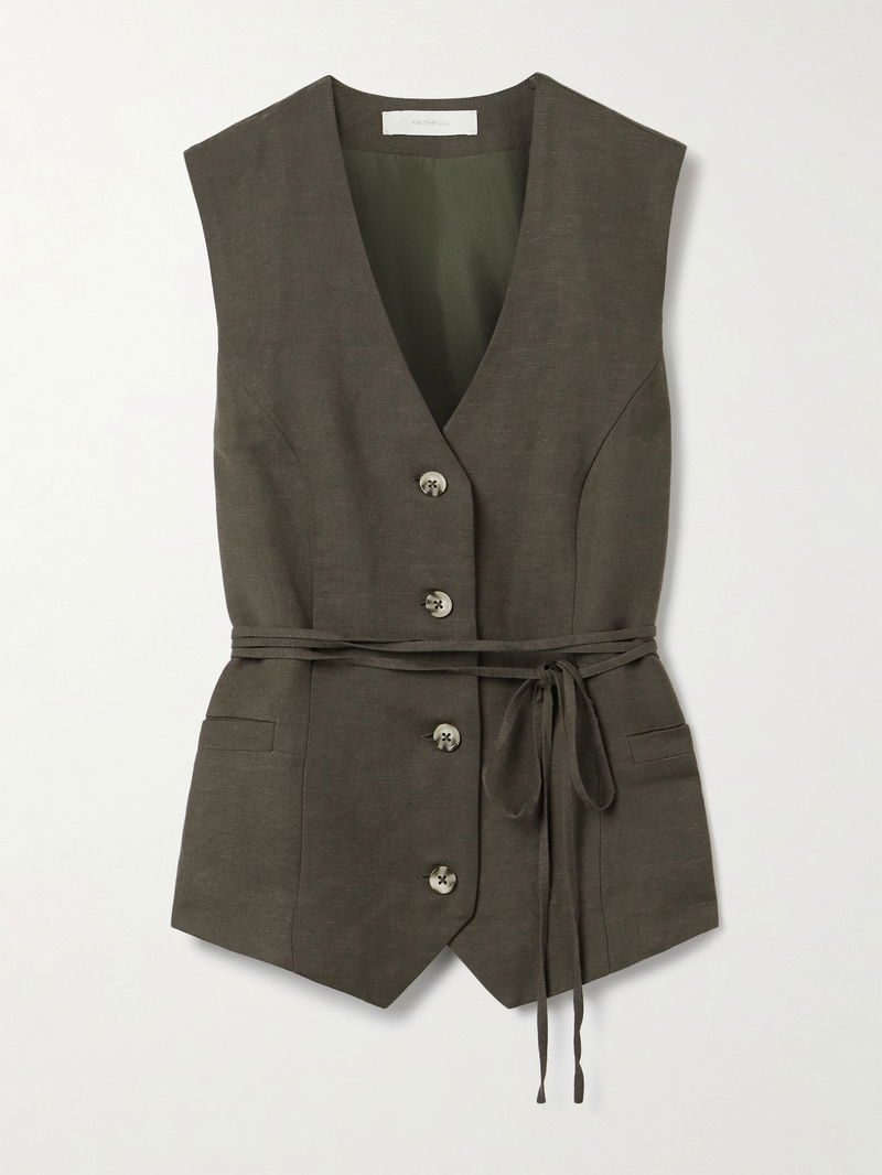 Faithfull's 'Eva' vest is designed with wraparound ties that further emphasize its slim, darted shape.