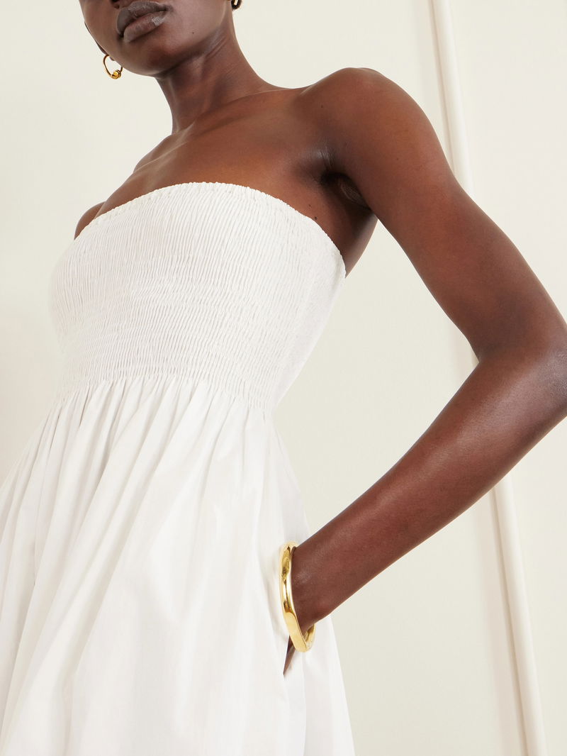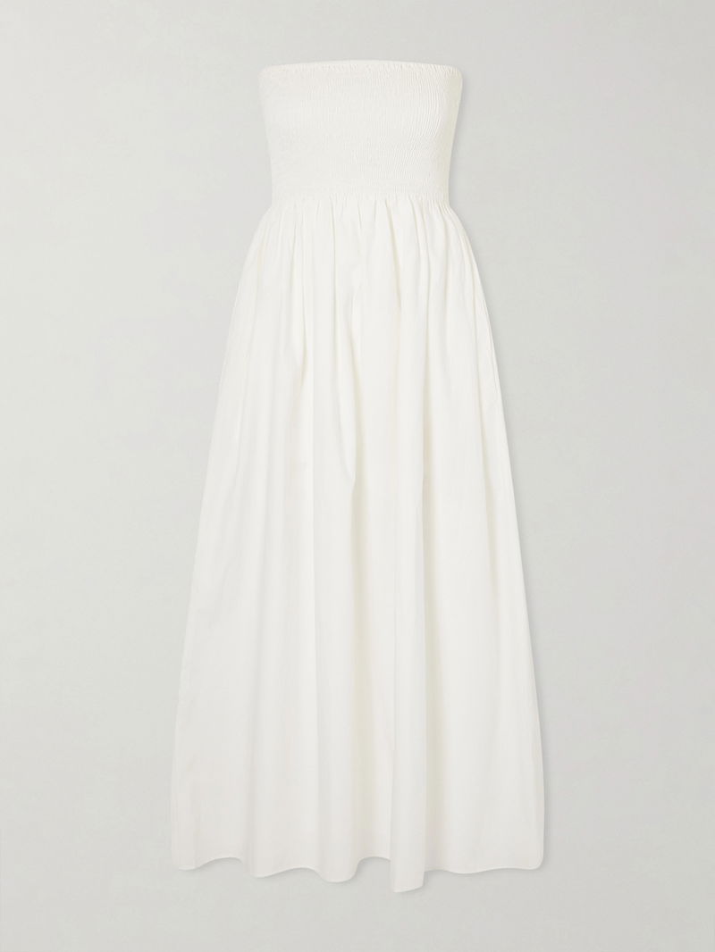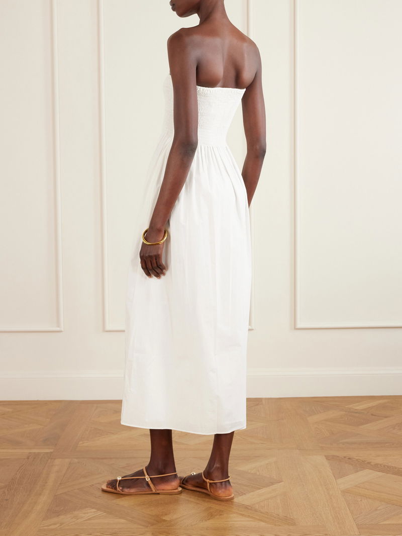 Jamie Strapless Shirred Cotton-poplin Midi Dress