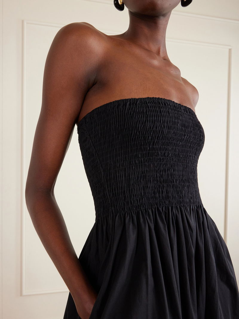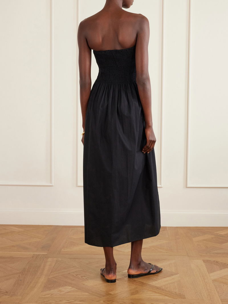 Jamie Strapless Shirred Cotton-poplin Midi Dress