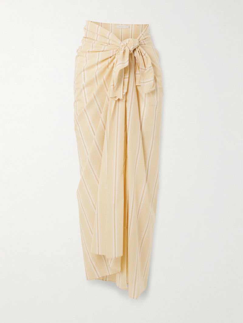 Be sure to pack Faithfull's 'Lomas' pareo for your next vacation – its generous size means it can be worn either full-length or folded as a mini style, and it can also be tied as a strapless top, carry bag or beach towel. It's made from cotton yarn-dyed with softly faded yellow and off-white stripes.