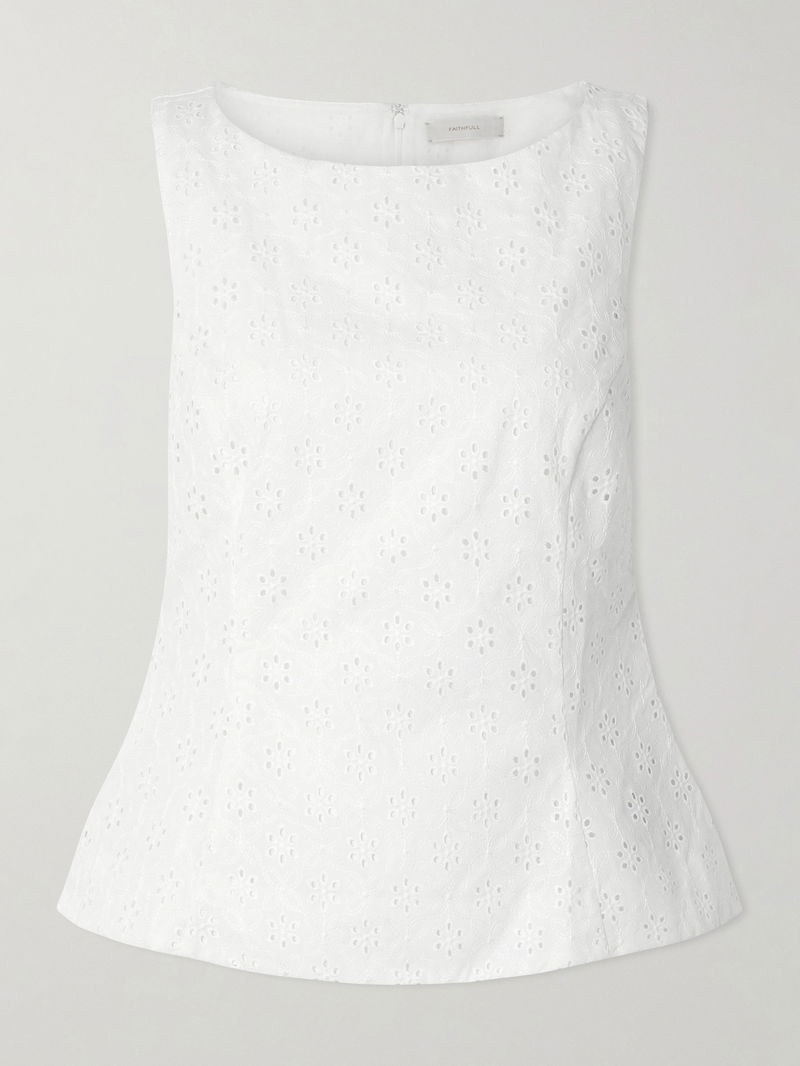 Faithfull's 'Olivia' top is cut from broderie anglaise that's embroidered with pretty daisies. Lined with cotton for coverage, it's cinched in at the waist and flares out to a peplum hem. Wear as a set with the matching shorts.