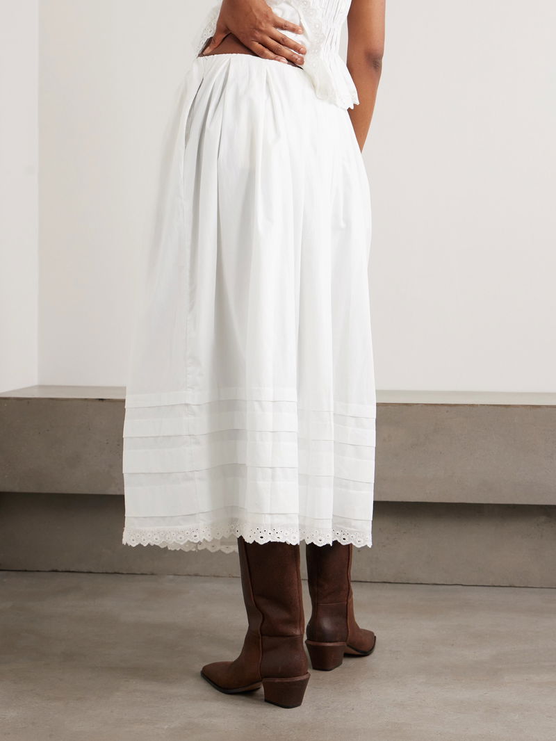 Faithfull's 'Ruth' skirt is so classic. Made from cotton, it's gathered at the waist and falls in soft folds to a tucked hem. It comes with a petticoat for added volume and has a sweet broderie anglaise edge.