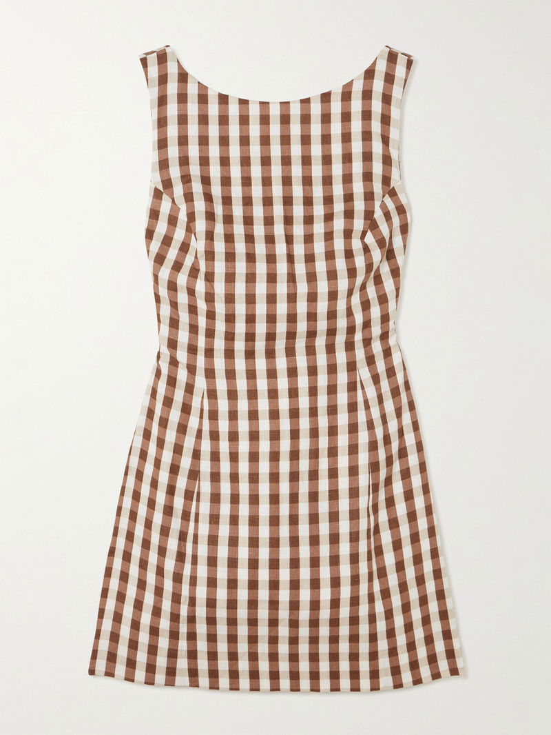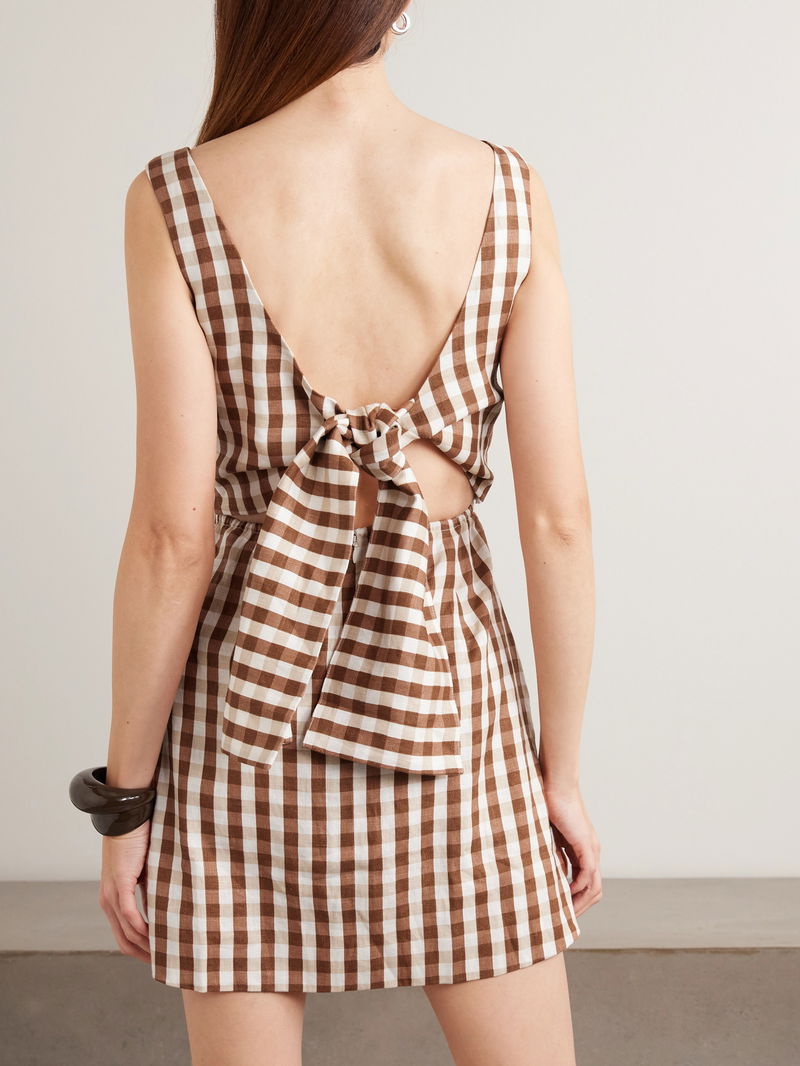 Inspired by the spirit of endless summer, FAITHFULL's effortless clothing is perfect for your next vacation. This 'Sofia' mini dress is made from breathable linen that's patterned with classic gingham check, and has a timeless A-line shape. Use the adjustable ties at the back to perfect the fit.