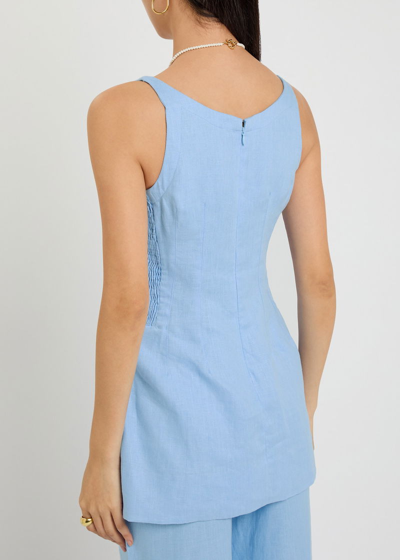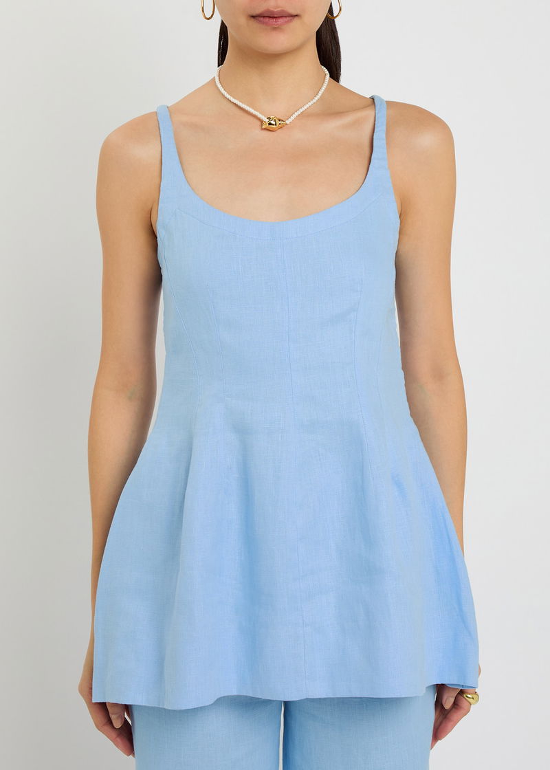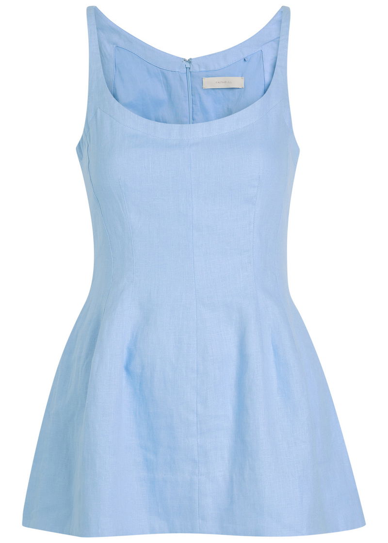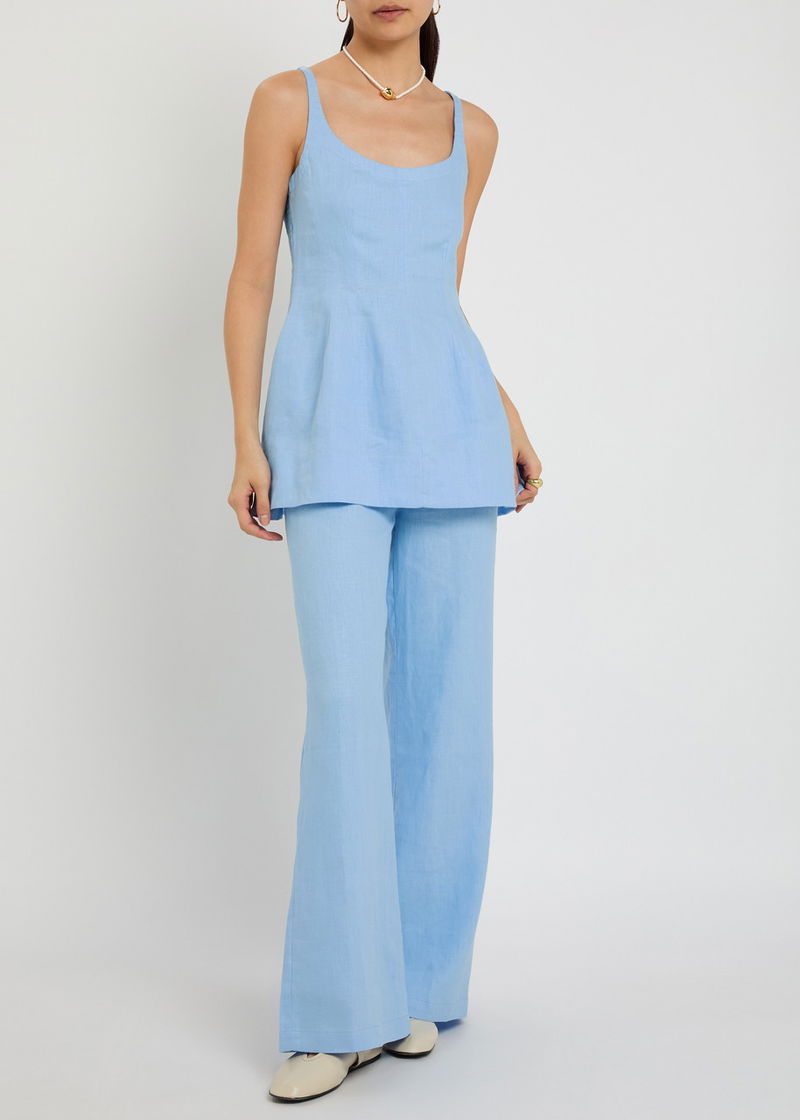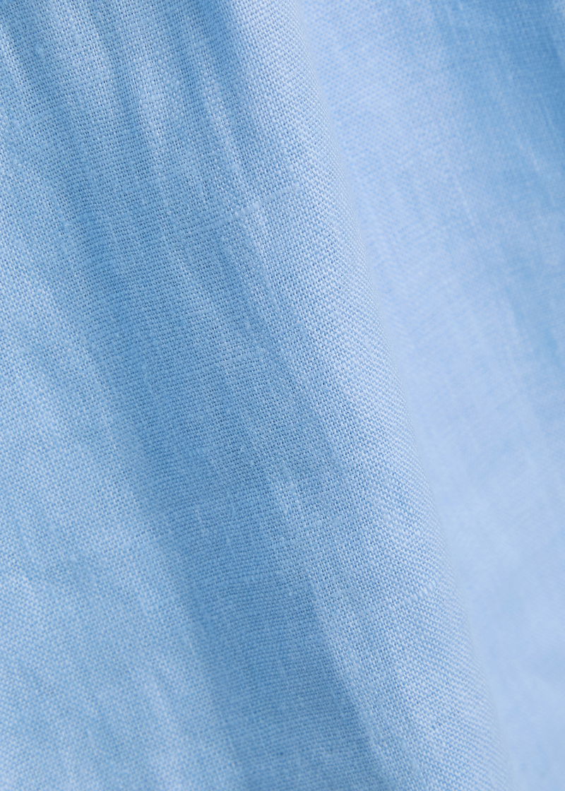 Made with at least 50% linen. Linen is made from the fibres of the flax plant. Flax is resilient and can grow in poor soil, using less water than cotton to produce.'