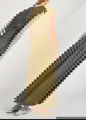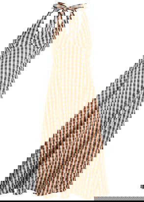 Handmade Faithfull The Brand green and white crepe dress. El Marsa floral print, tie-fastening halterneck, tie fastening straps at open back, fully lined. Concealed zip fastening at back.