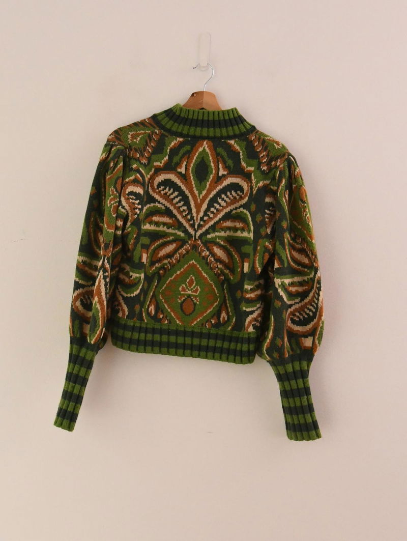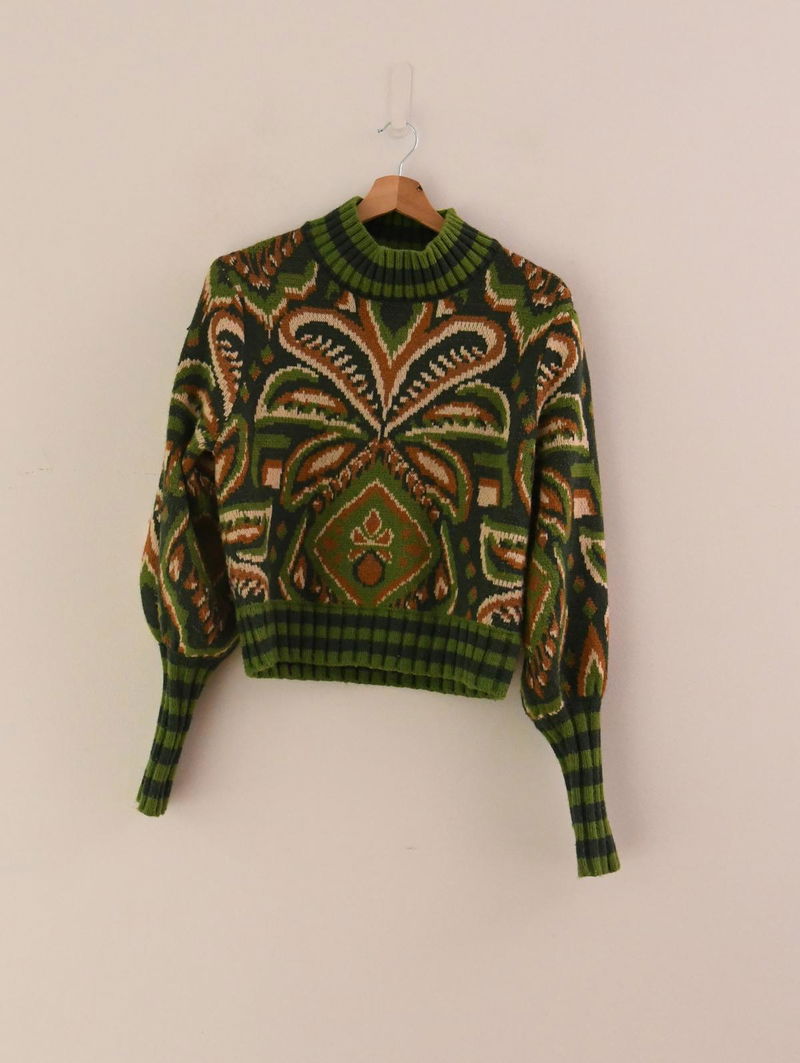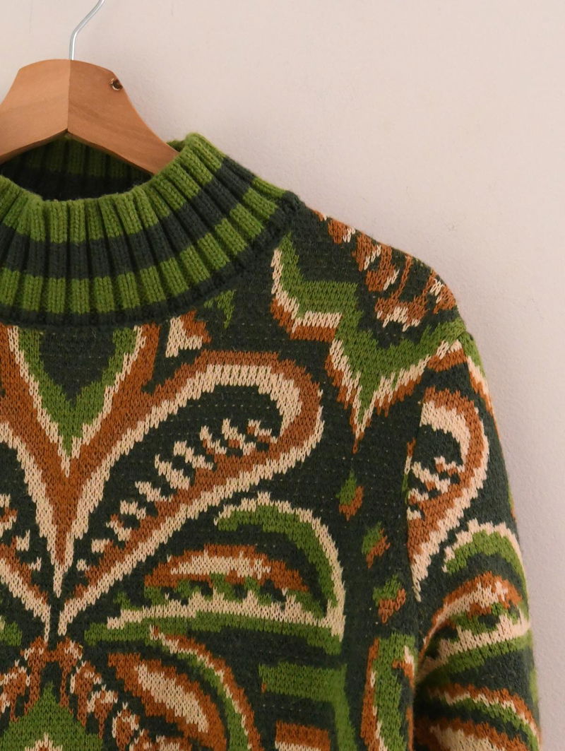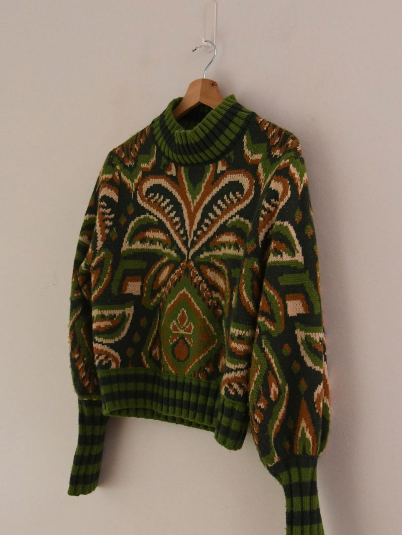 Turtle Neck, palm print, detailed cuffs knitted jumper. True to size.