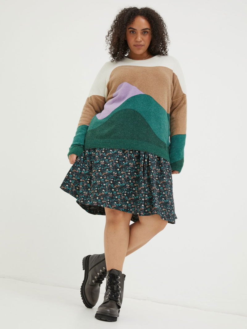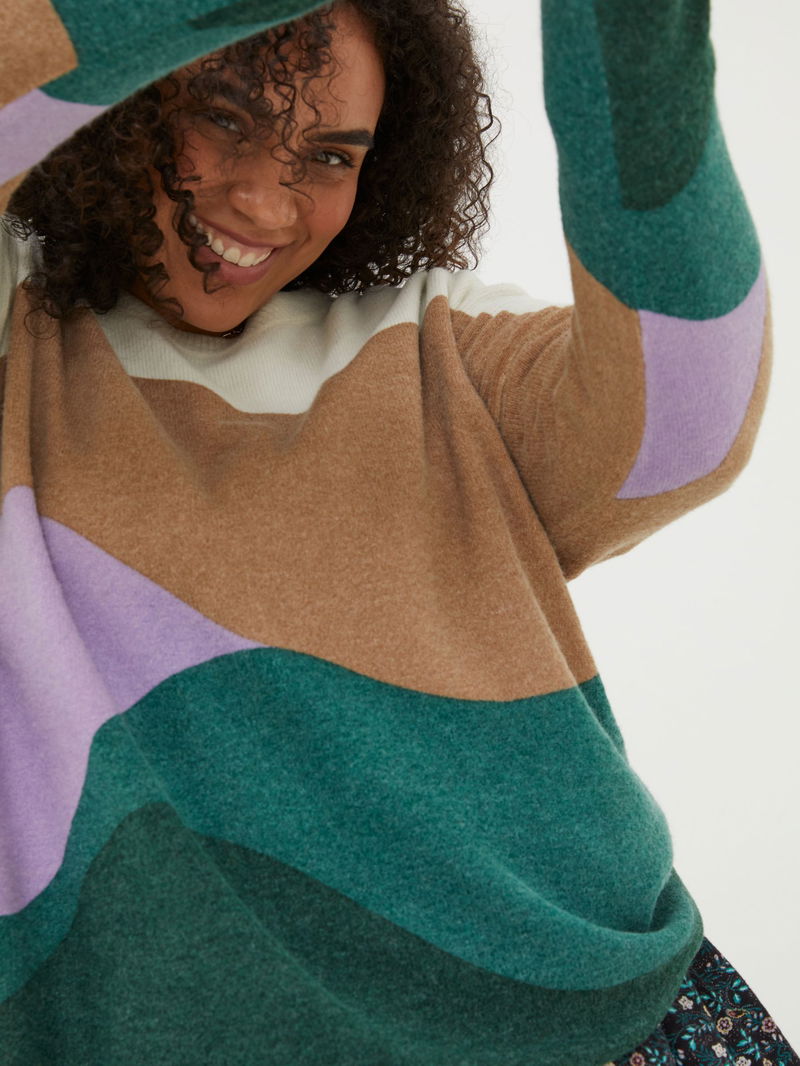 Layering up with a round neckline, this jumper by FatFace is vibrantly patterned with blocks of colour and is constructed from a wool-rich blend for an ultra-cosy and luxuriously warm finish.