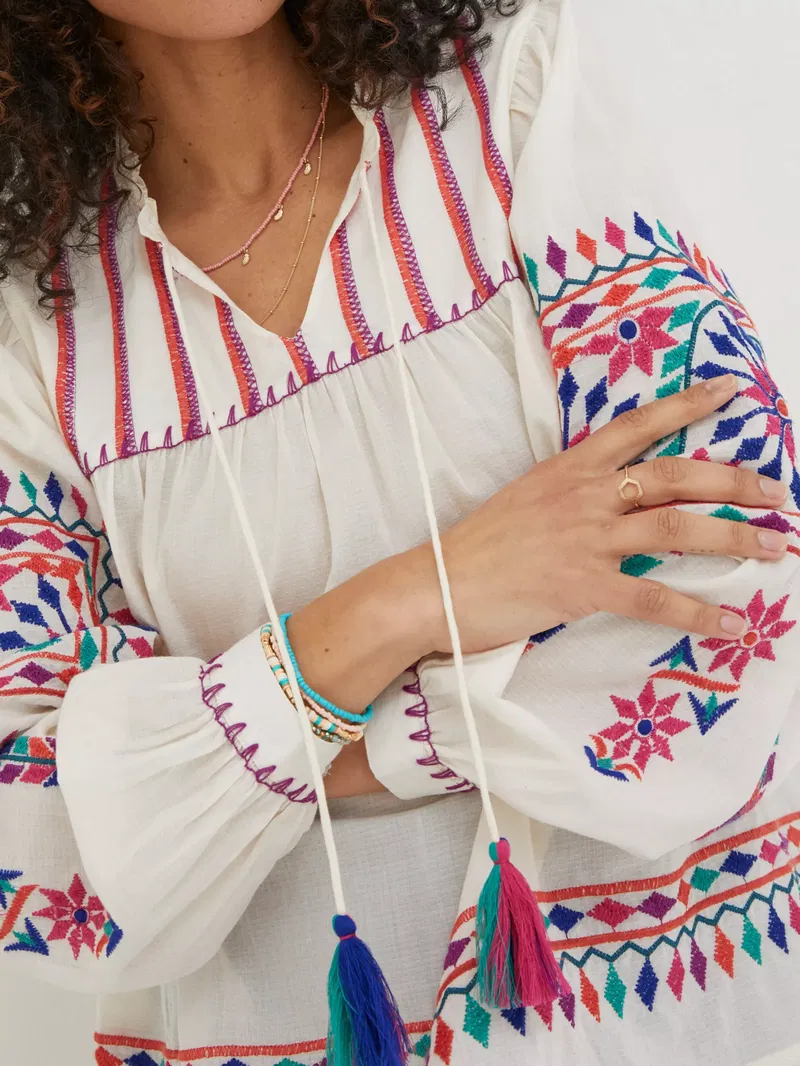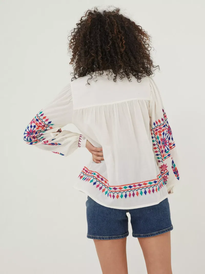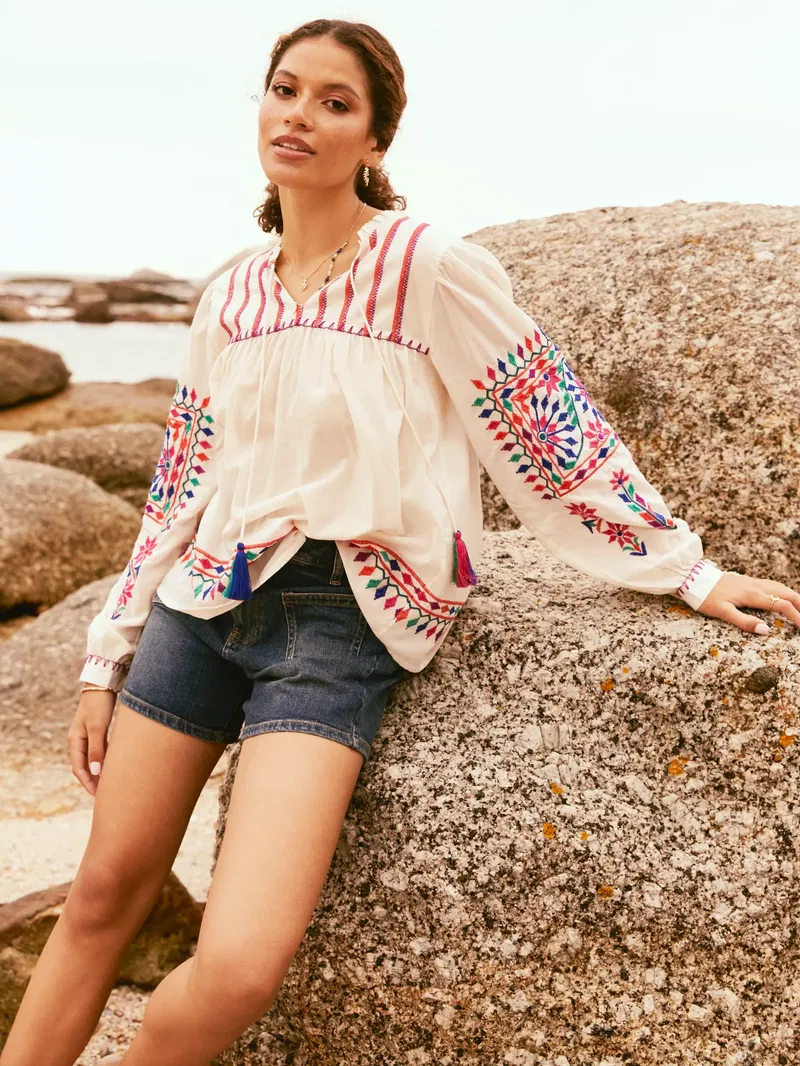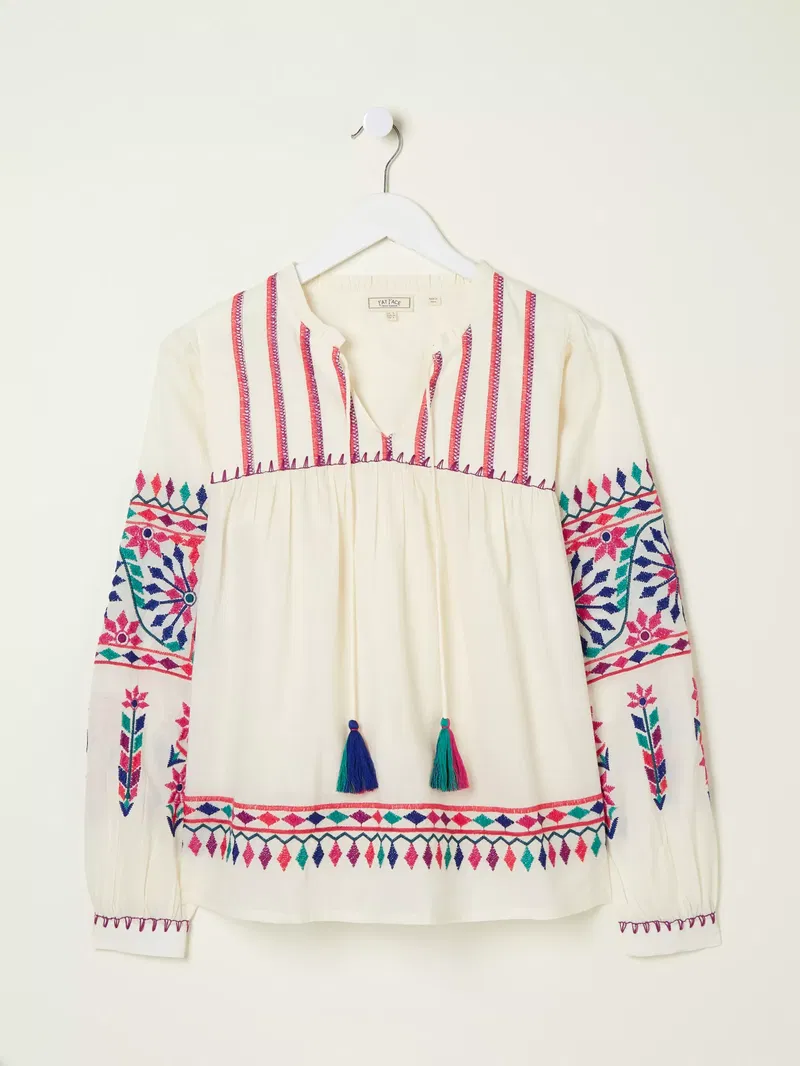 An effortless choice, this blouse from FatFace makes an impact with its abstract print. With a flattering v-neckline and long sleeves, it's made from soft cotton.