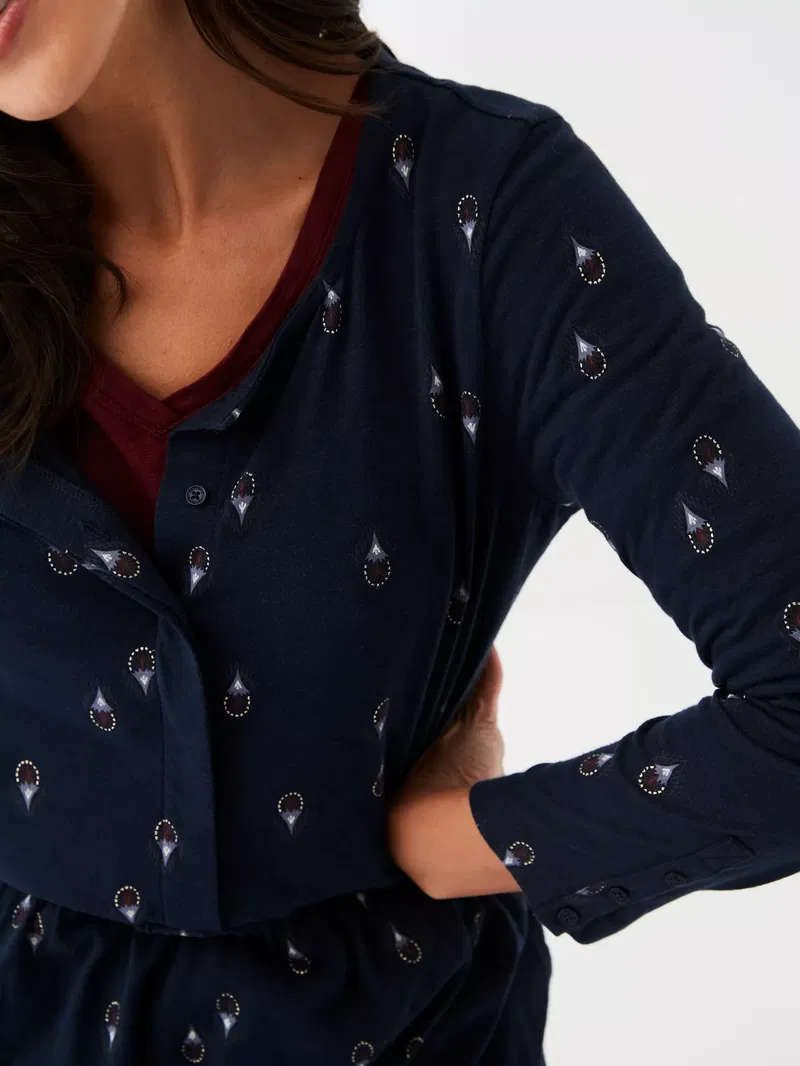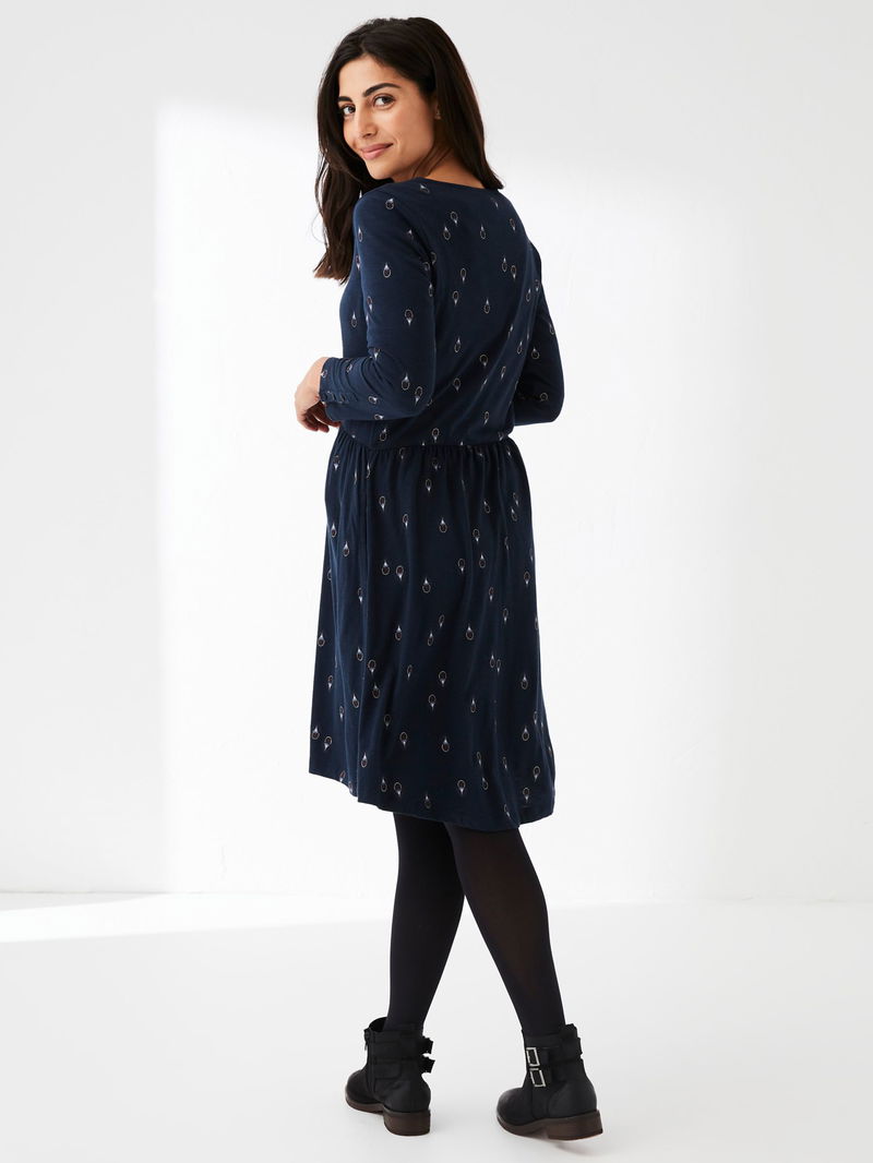 Providing a staple for smart-casual dressing, this knee-length dress by FatFace boasts a standout graphic print. With a flattering v-neckline and long sleeves, it is cut from soft blended cotton for comfortable wear and is a care-free option for daytime dressing.