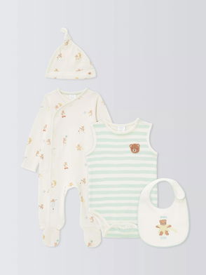 Fendi stretch-cotton two-piece set. Concealed popper fastening. Babygrow: Peter-pan collar, embroidery at front, contrast panels Hat: rounded crown, folded brim, brand embroidery at front.