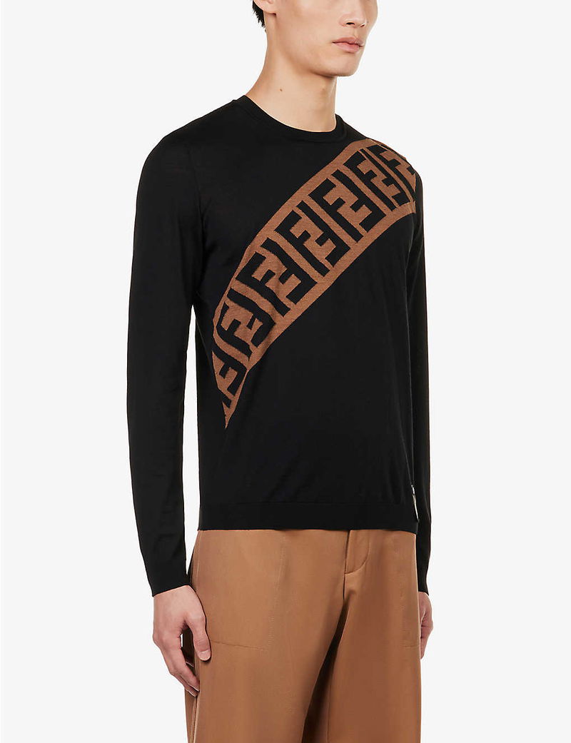 It's hard to imagine a time before Fendi's iconic logo was synonymous with the label, but it only became part of the design repertoire in the 80s thanks to the sartorial mastermind Karl Lagerfeld himself. Never one to shy away from a flourish of logomania, the brand stitches the iconic monogram motif in a diagonal motion across the latest jumper from the SS23 collection, proving that the motif-led craze is still very much alive.