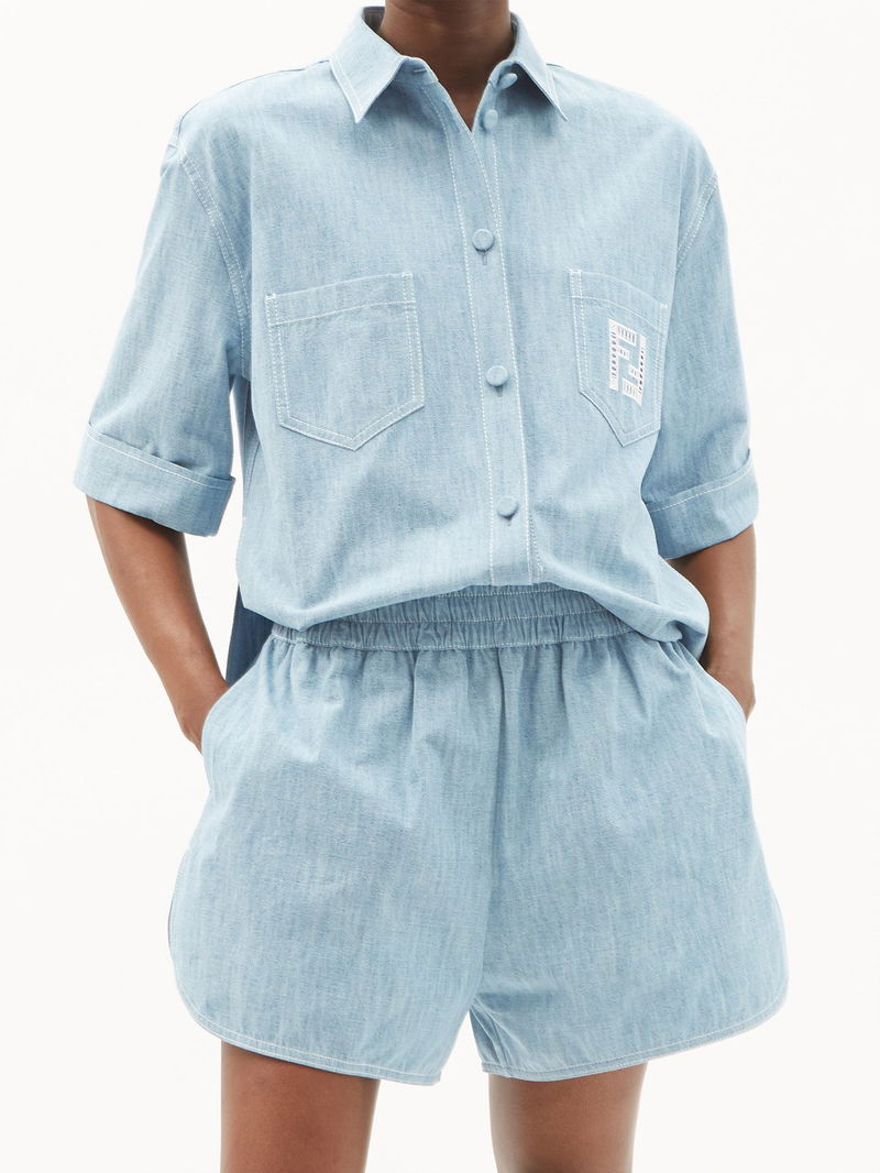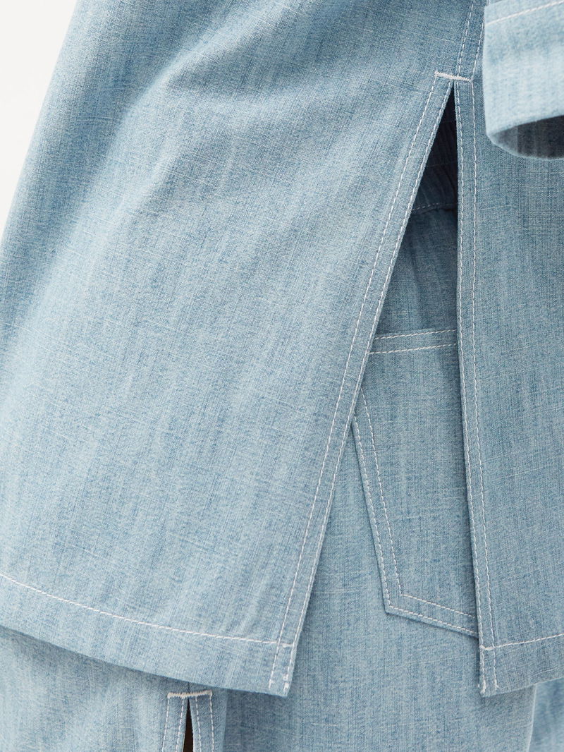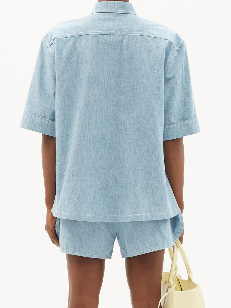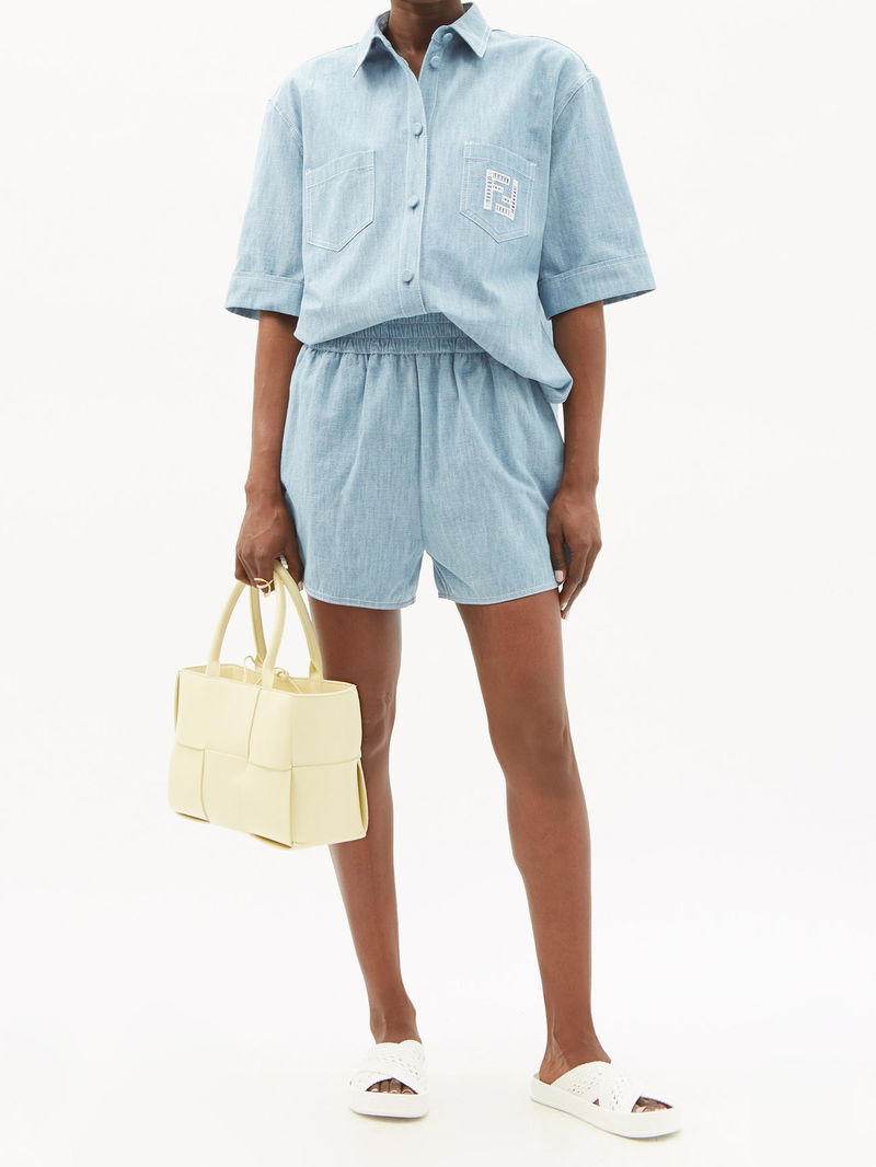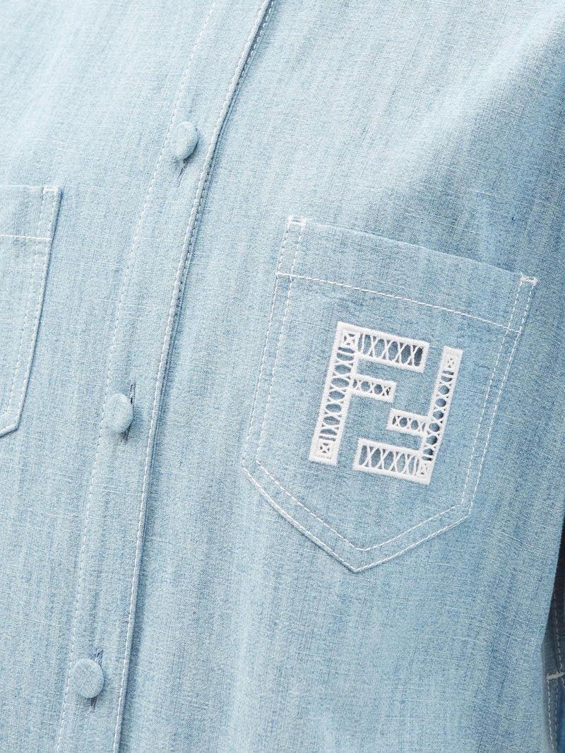 Fendi's light-blue shirt is embroidered with the signature FF logo which was sketched by the late Karl Lagerfeld in 1965. It's made in Italy from breezy cotton chambray to a relaxed fit with a point collar and turn-up cuffs, then secures with front buttons. Team it with the coordinating shorts for a playful edit.
