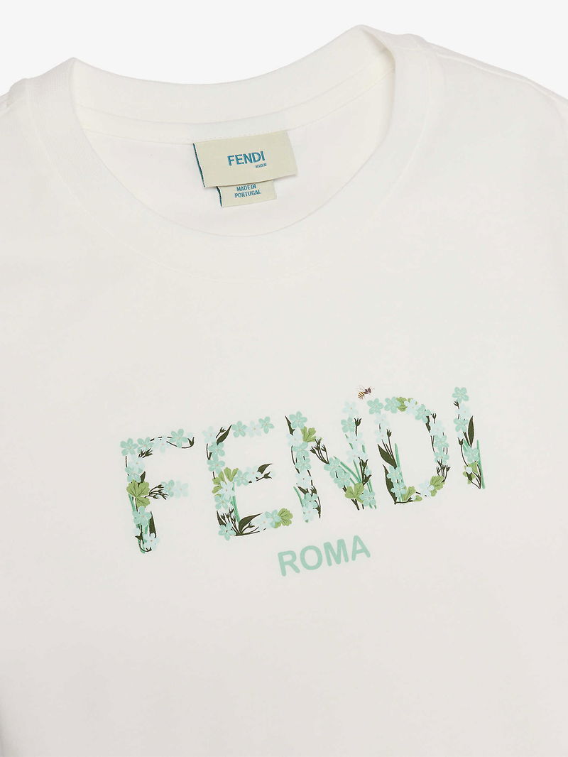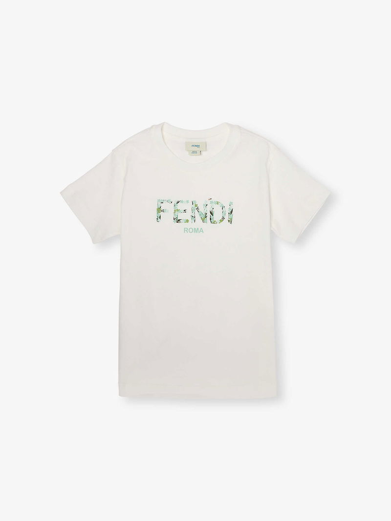 Fendi cotton-jersey T-shirt. Relaxed fit, ribbed round-neck, short sleeves, floral brand print at front.