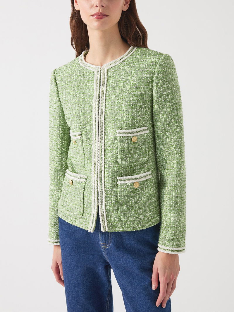The Charlie Treetop & Birch Cotton Blend Tweed and Trim Jacket offers a refined mix of classic style and comfort. Crafted from a cotton blend tweed, it provides durability with a soft, breathable feel. The carefully designed trim adds subtle detailing, making the jacket versatile for both casual and formal occasions. Its tailored fit ensures a flattering silhouette while maintaining ease of movement. This jacket is an ideal choice for those seeking timeless elegance combined with everyday practicality.