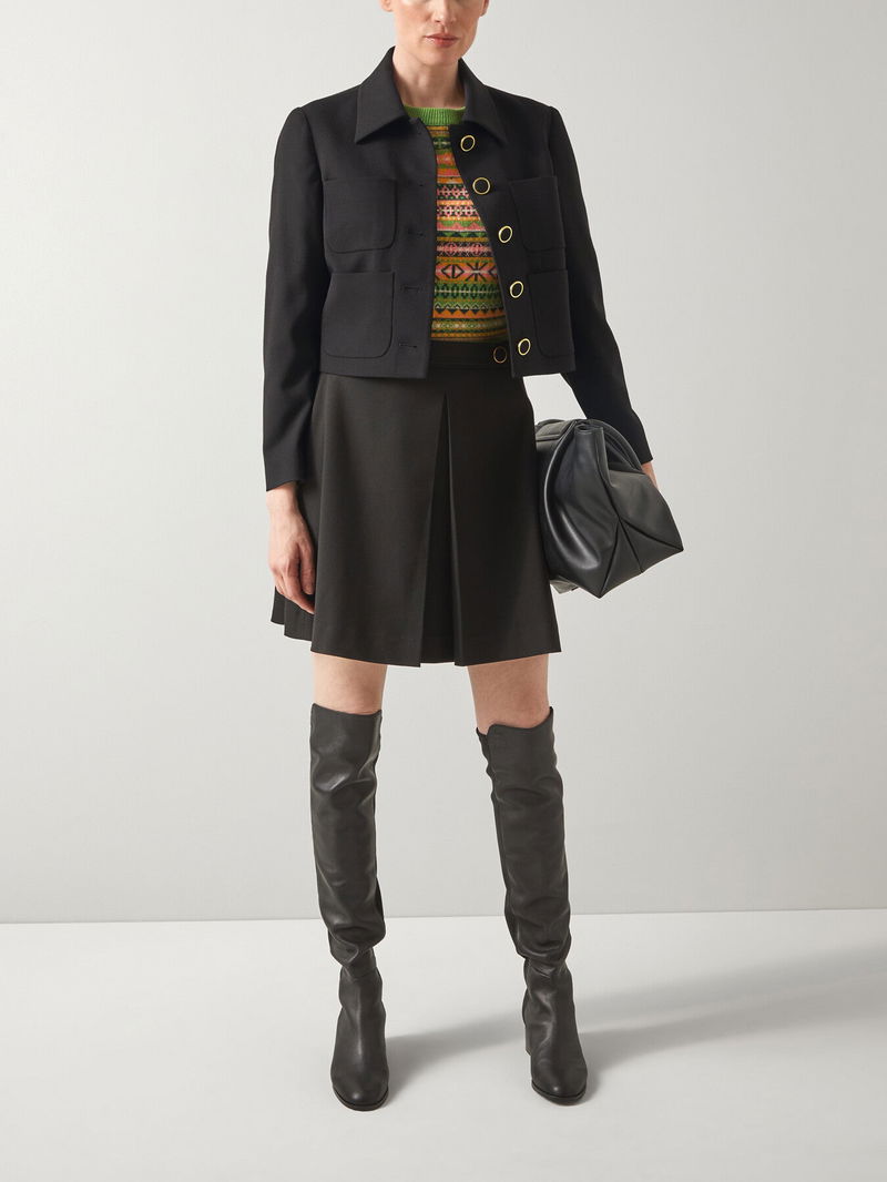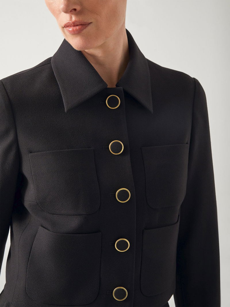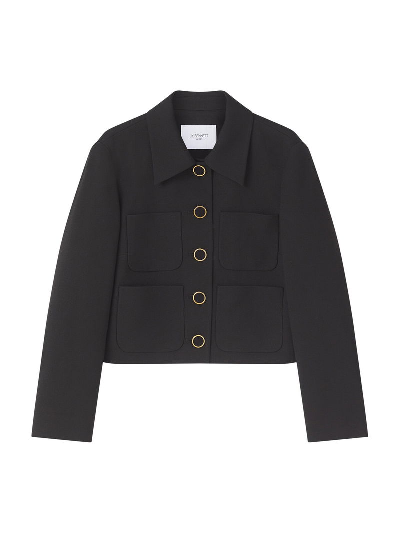 The Halina Jacket is distinguished by its elegant gold buttons that add a touch of sophistication to its classic design. Featuring a structured collar, this jacket combines timeless style with refined detailing, making it a versatile piece suitable for both formal and casual occasions. Crafted to enhance any outfit, it offers a polished and stylish look.