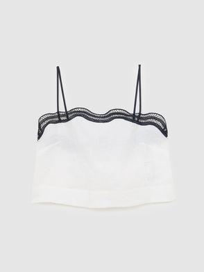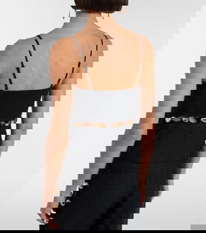 Cross hatch texture print. Camisole with seam detailing. Adjustable straps. Skims body for a relaxed fit.