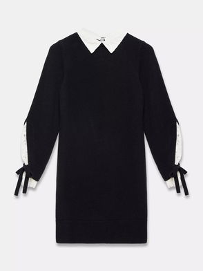Black jersey dress with elasticated neck and sleeve detailing, and a back keyhole with button closure. In a loose fit, it falls at mid thigh.