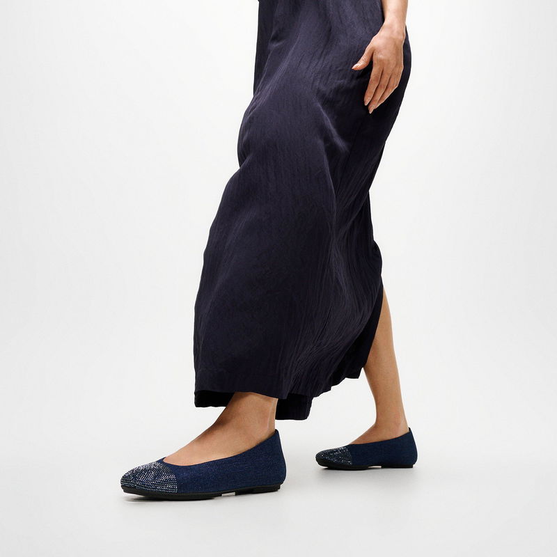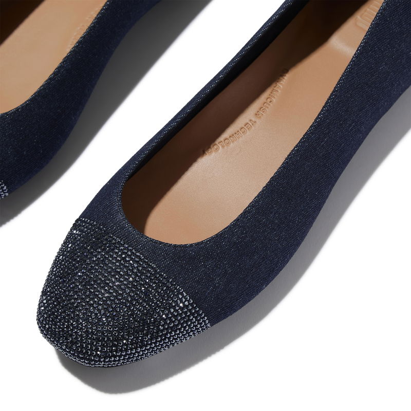 DELICATO Crystal Cap-Toe Denim Ballerinas Polyester-Cotton