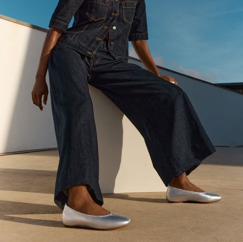 DELICATO High-Cut Metallic Soft-Leather Ballerinas