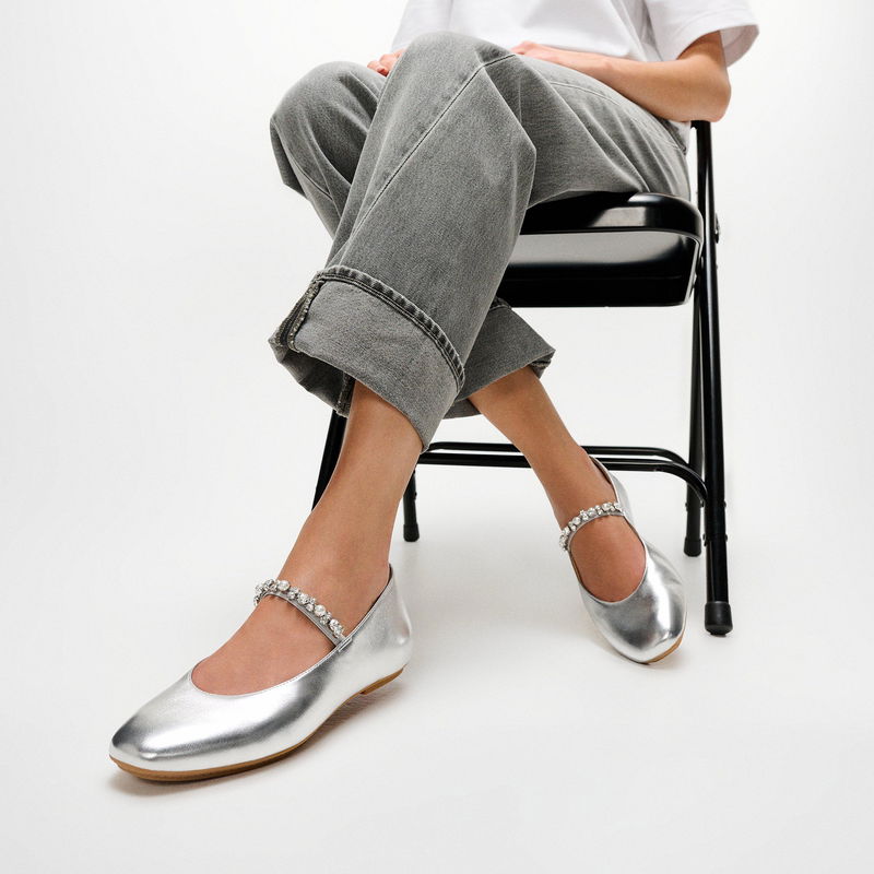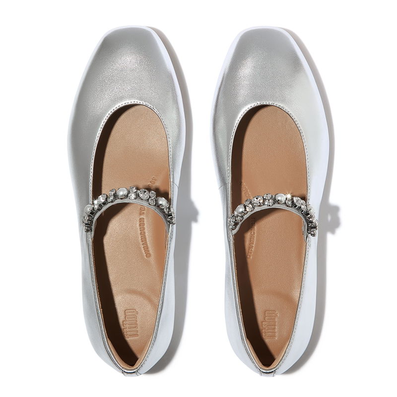 DELICATO Pearls-And-Crystal Soft Metallic-Leather Mary Janes