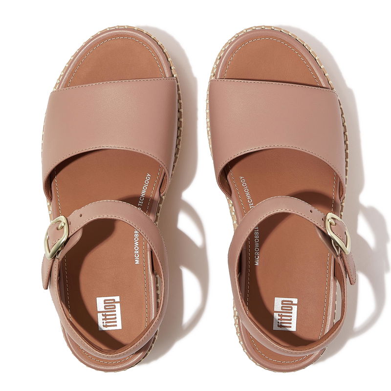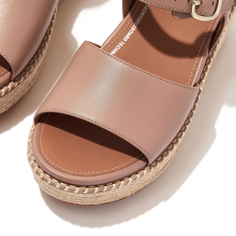 F-MODE Espadrille Leather Flatform Ankle-Strap Sandals