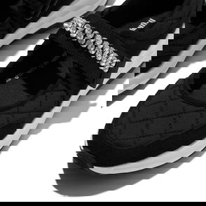 F-MODE Flow Crystal-Strap Quilted Mary Janes Canvas Polyester/Suede/Rubber
