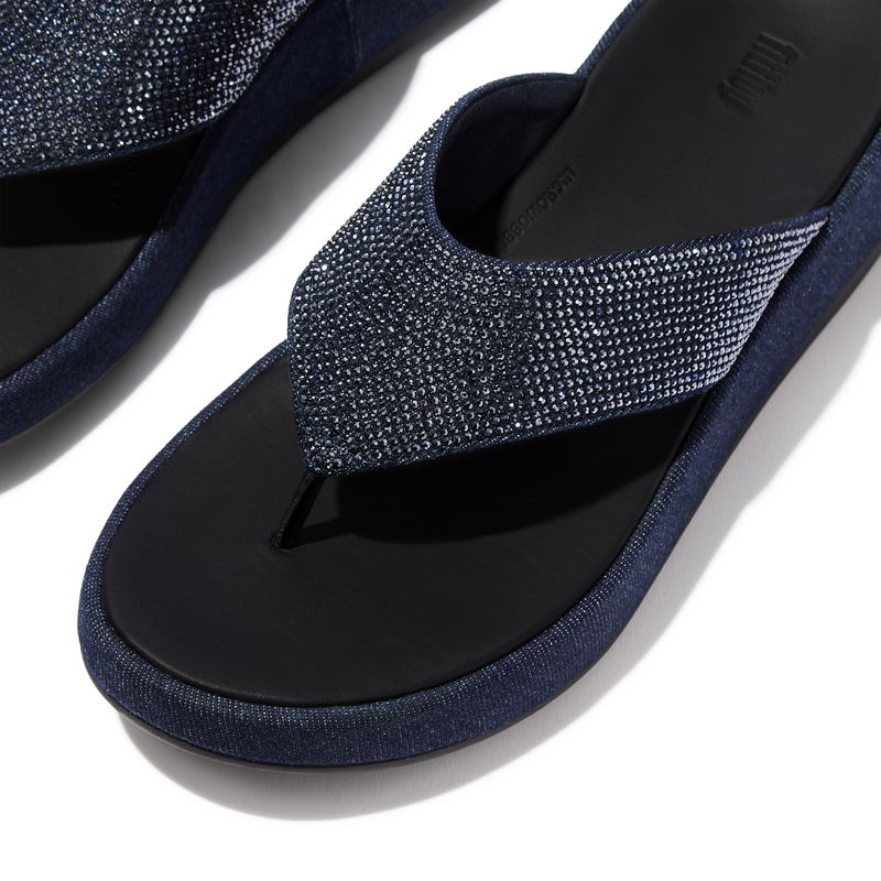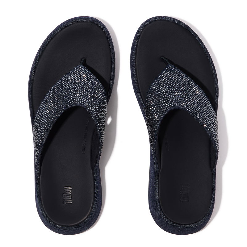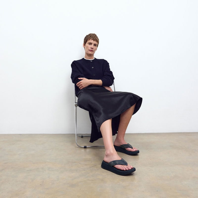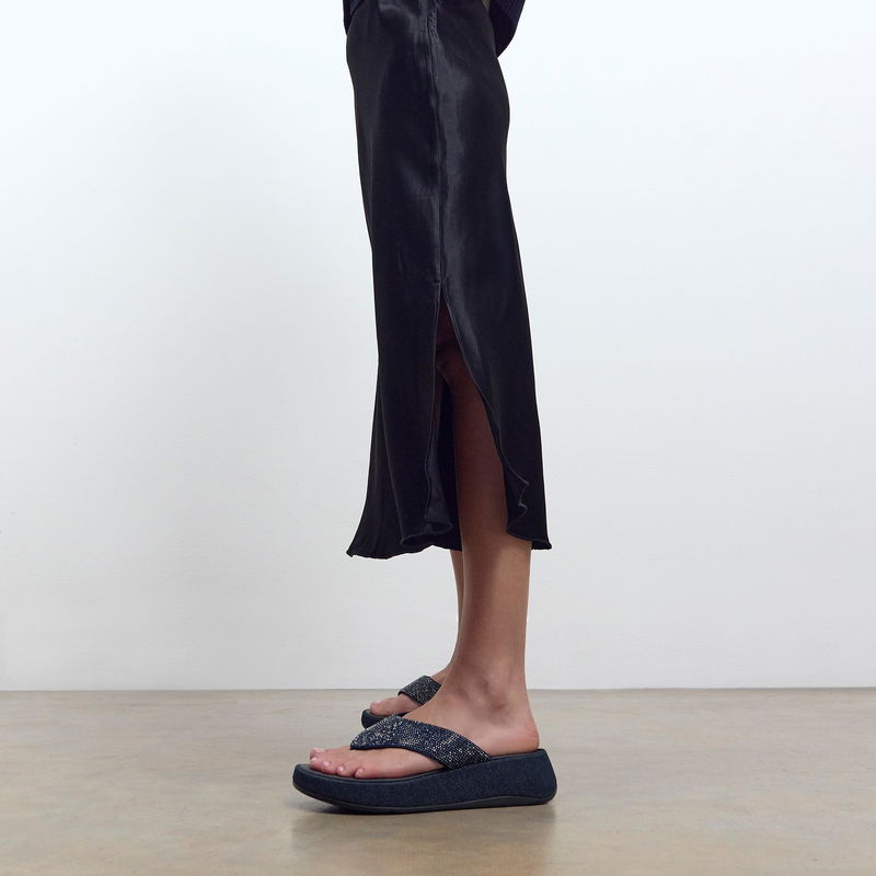 Signature comfort meets standout styling. A great way to prove denim works for summer? Our F-MODE sandals. Their easy, slip-on silhouette showcases the timeless appeal of classic denim, elevated with shimmering crystal embellishments. But it's not all about looks; they're built on our legendary Microwobbleboard™ cushioning for all-day comfort, with triple-density support designed to reduce muscle fatigue. The result? Stylish sandals that work with your body, not against it - whether you're strolling through the city or enjoying a weekend getaway.