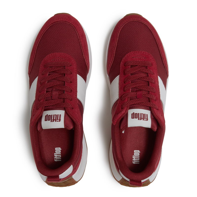 Biomechanical engineering meets premium materials - with the protection you need for unpredictable weather. A mix of colour-blocked fabric and tonal, textured leather panels create the classic silhouette of our F-Mode Flow sneakers; but there's cutting-edge footwear technology hidden within that retro-inspired exterior. Our legendary Microwobbleboard™ technology works behind the scenes to deliver uncompromising support that helps to optimize your natural body movements to stop your muscles from overworking. Our signature tech is wrapped in luxurious mixed-material construction that's treated to a weather-resistant Scotchgard™ finish to keep you moving confidently through whatever the day brings.