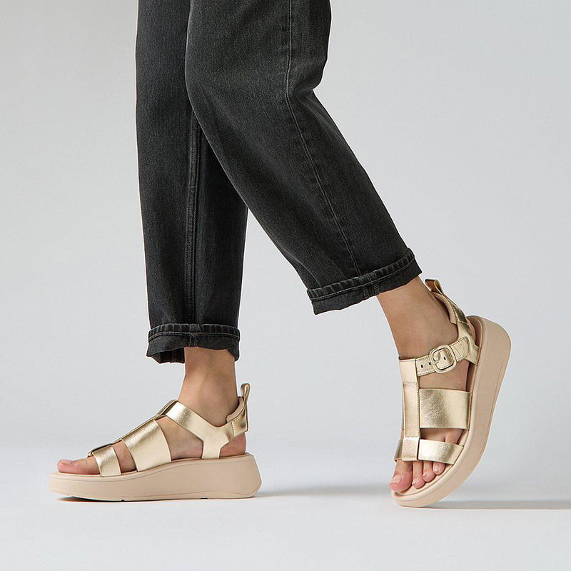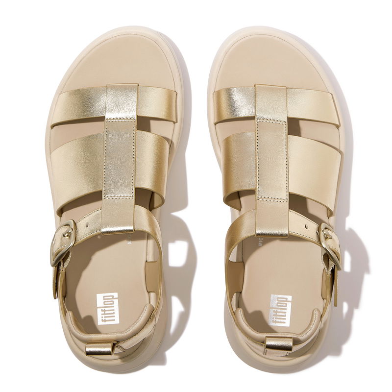 You'll be hooked on this fabulous 'fisherman' (after selling out super fast at launch, it returns this season in must-have new colors). Taking a utilitarian classic to new heights, we've set a clean chunky-strap upper, offering generous coverage, on a stacked - yet lightweight - sole. Cool. Easy. Contemporary. Crafted in supple high-quality leather, here in a shimmering metallic version that works day through to night. An adjustable back strap, sporting a curvy tonal buckle, ensures they stay on. Padded heel 'pillows' cushion your ankles. All-leather linings are soft against your feet. On a flatform-version of the brand's triple-density Microwobbleboard™ midsole - delivering ergonomic all-day comfort, cloud-like cushioning, and a little extra height. Unbeatable underfoot. Über-versatile (thanks to the simple aesthetic and 'neutral' metallic). Slip on to net plenty of compliments.